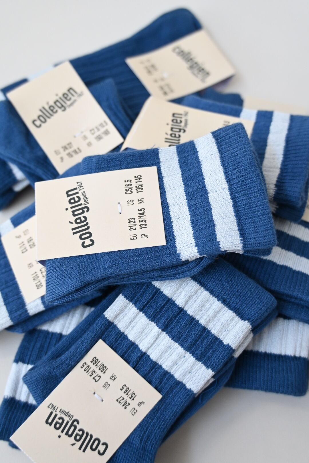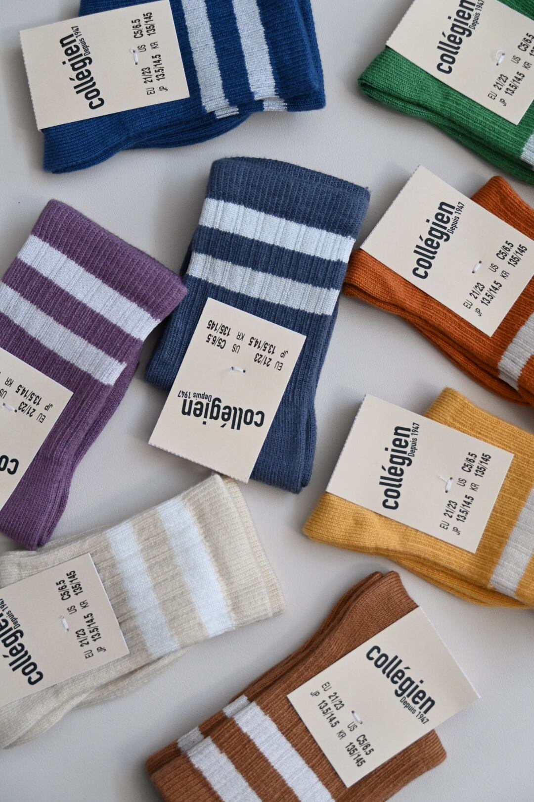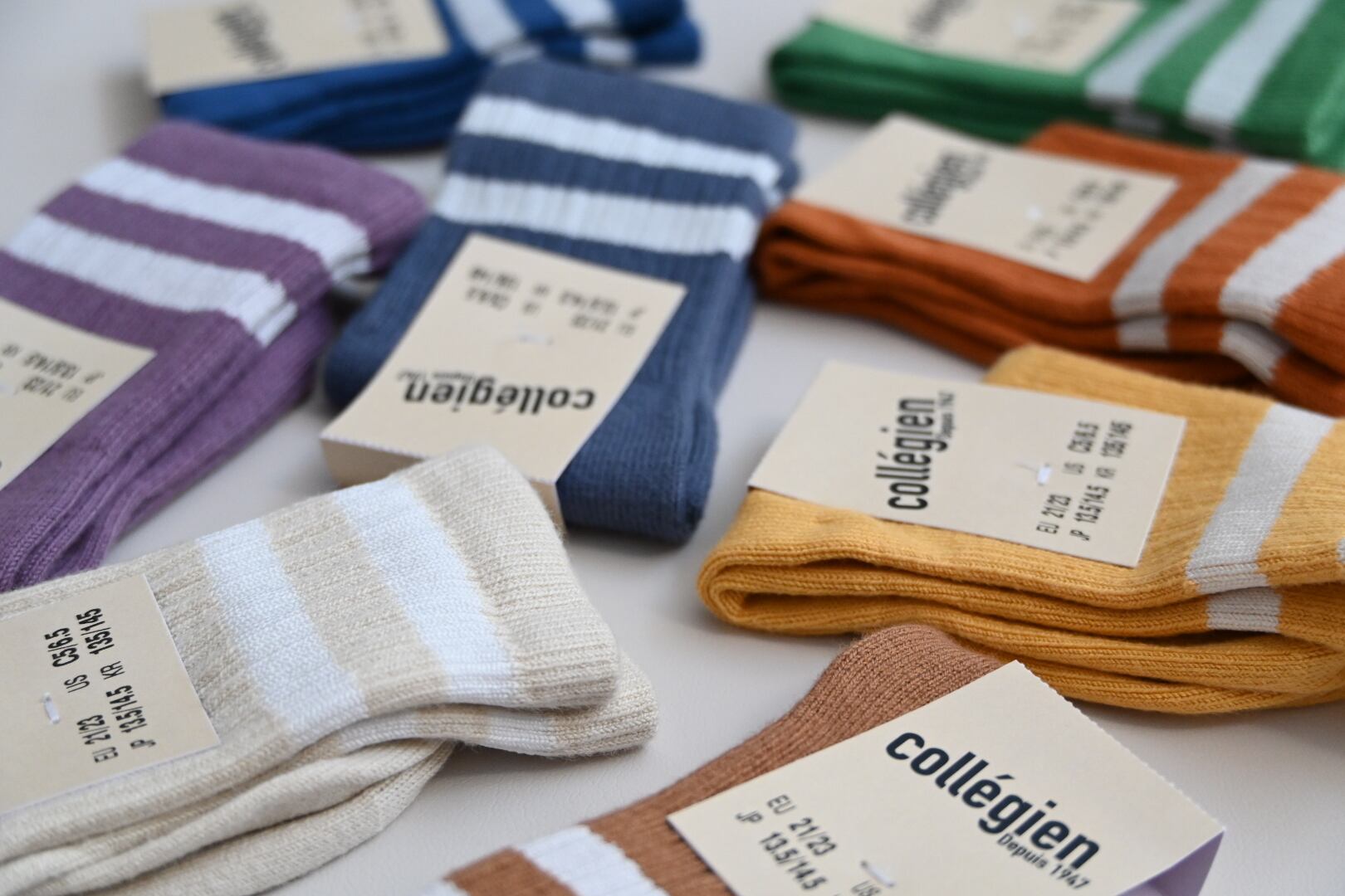 1947年にフランスで創業された5世代に渡り受け継がれているフットウェアの老舗ブランドです。 独特のカラーパレットに洗練されたデザインは世界中で多くの有名ブランドが撮影で使用しており、その人気ぶりはお墨付きです。また、Collegienは環境にも配慮しており、サステナブルなエジプトコットンを使用しています。最高品質のコットンのみを使用したソックスは非常に柔らかく、快適で耐久性もあります。