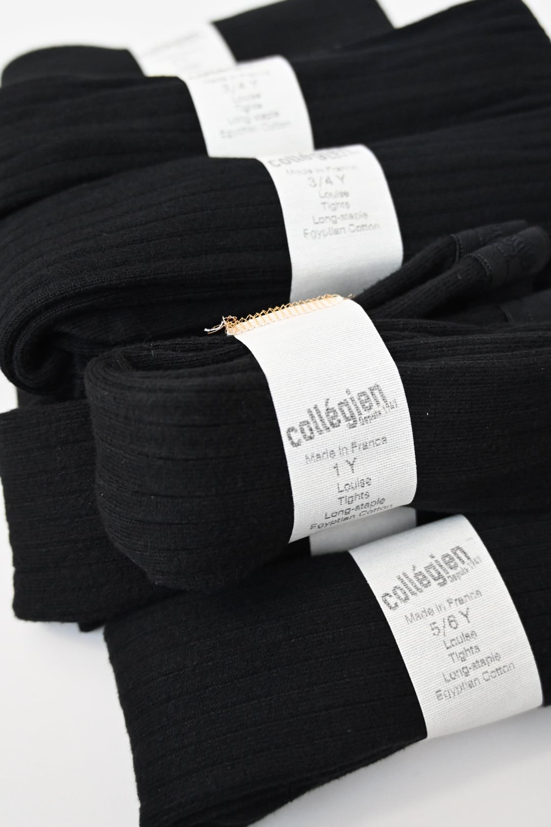 【Collégien】Louise - Ribbed Tights - Noir de Charbon