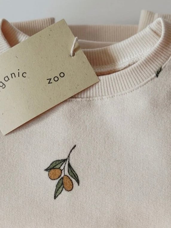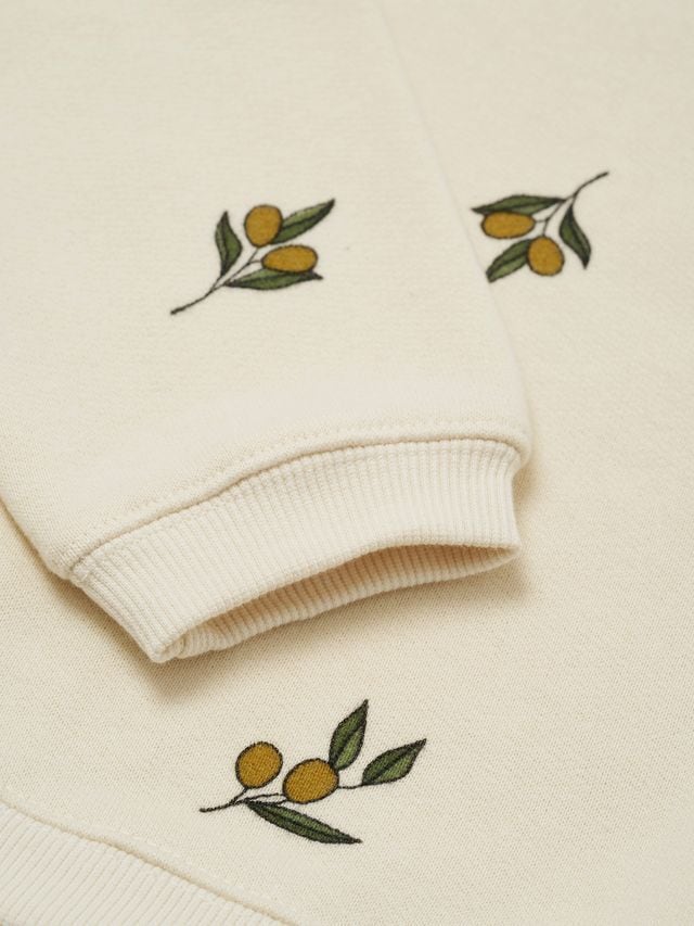 オリーブの枝をあしらった、非常に柔らかいオーガニックコットンで作られた究極のデイリースウェットシャツです。