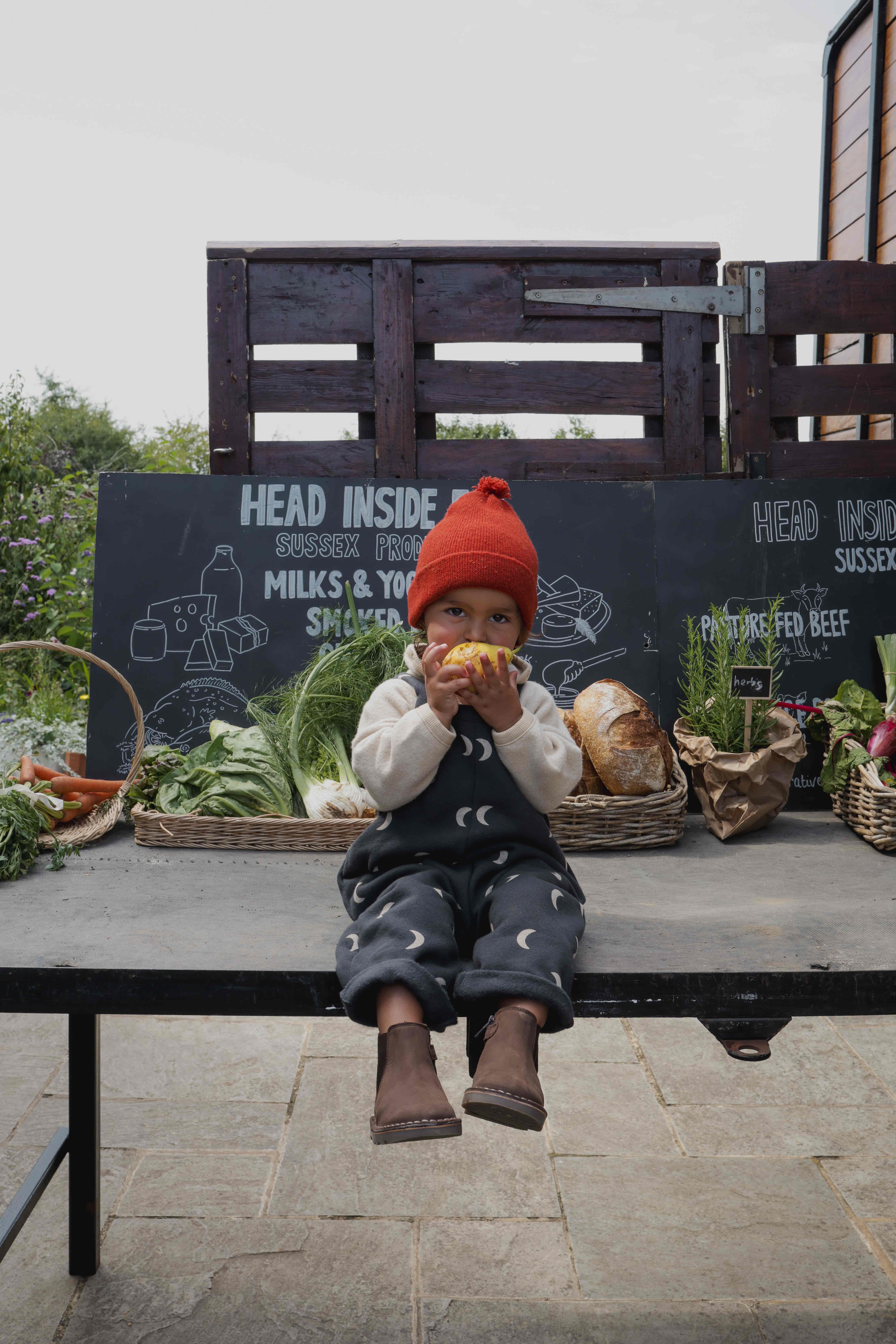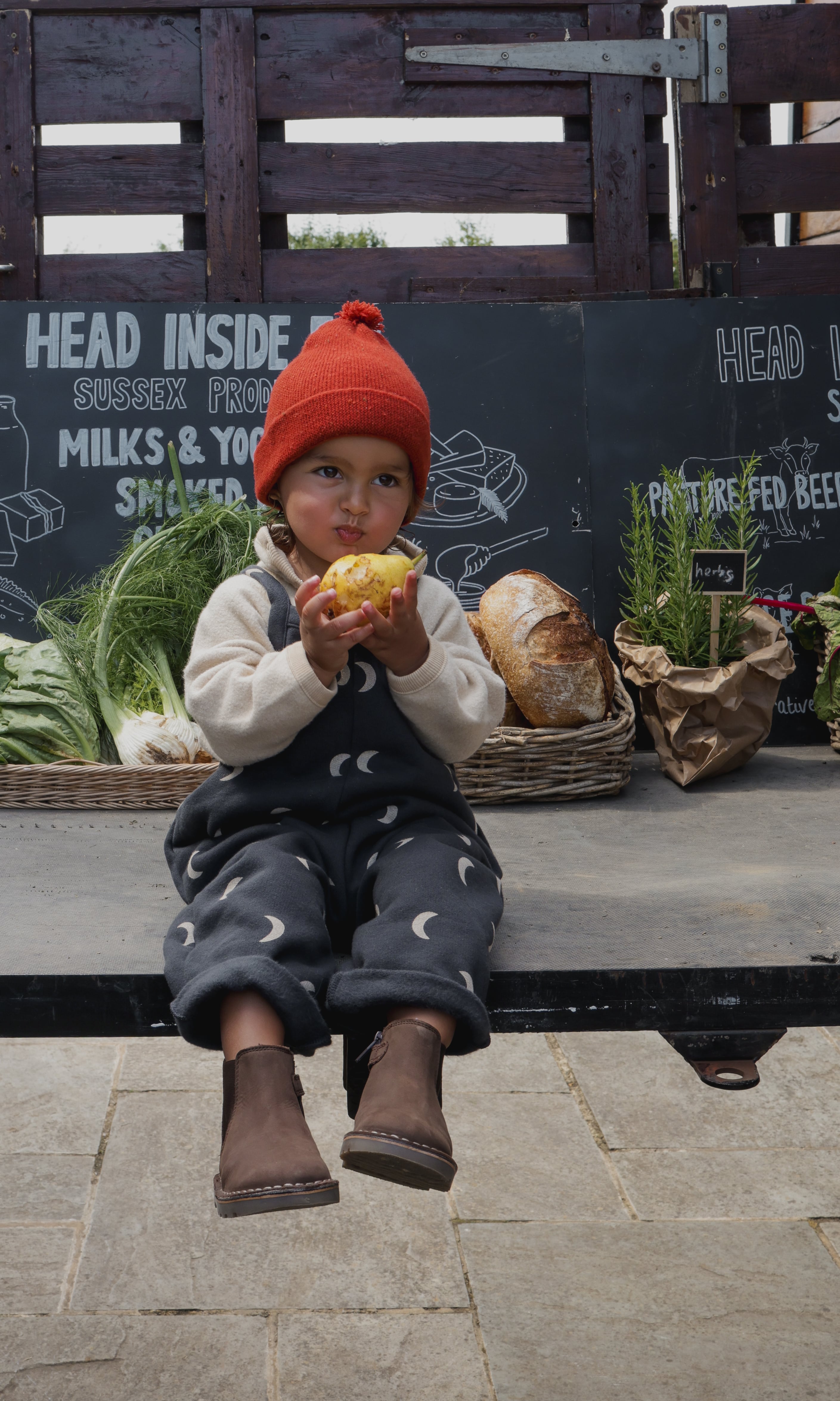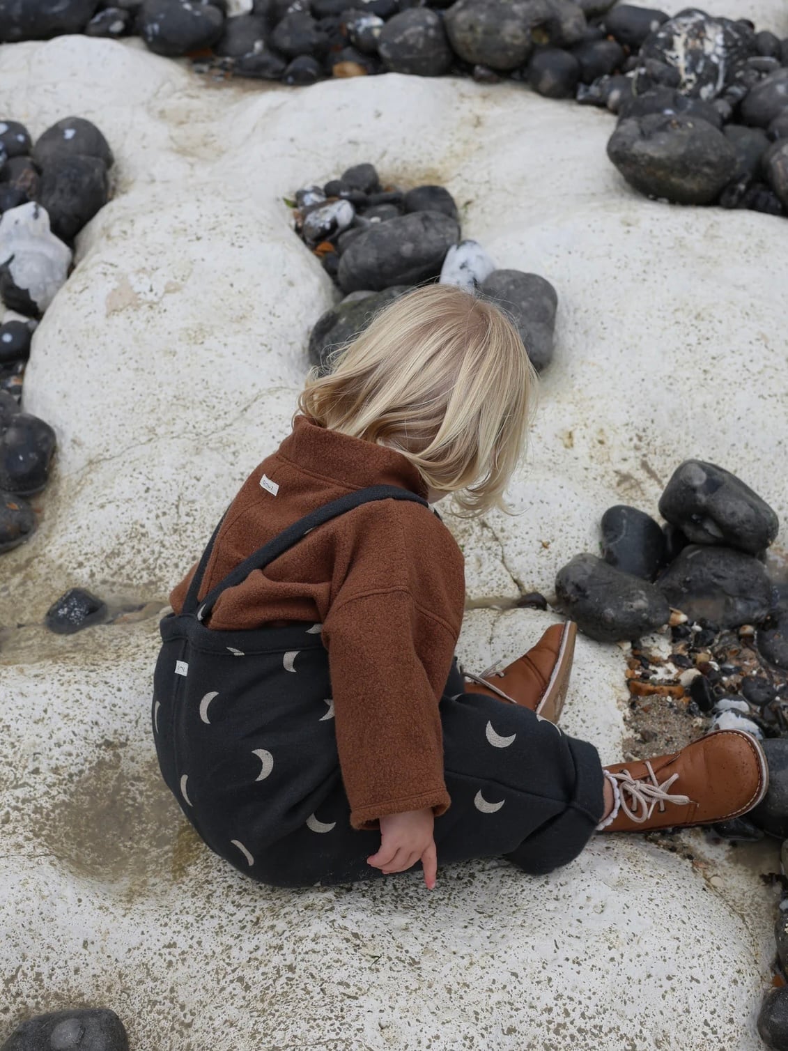 organic zoo定番のムーン柄Dungareesは毎年大人気のアイテム。非常に柔らかいテリーコットンで作られており、1日履いていても着心地が良いように作られています。シルエットもとても可愛いく、ぜひワードローブに仲間入りさせて頂きたいおすすめアイテムです。