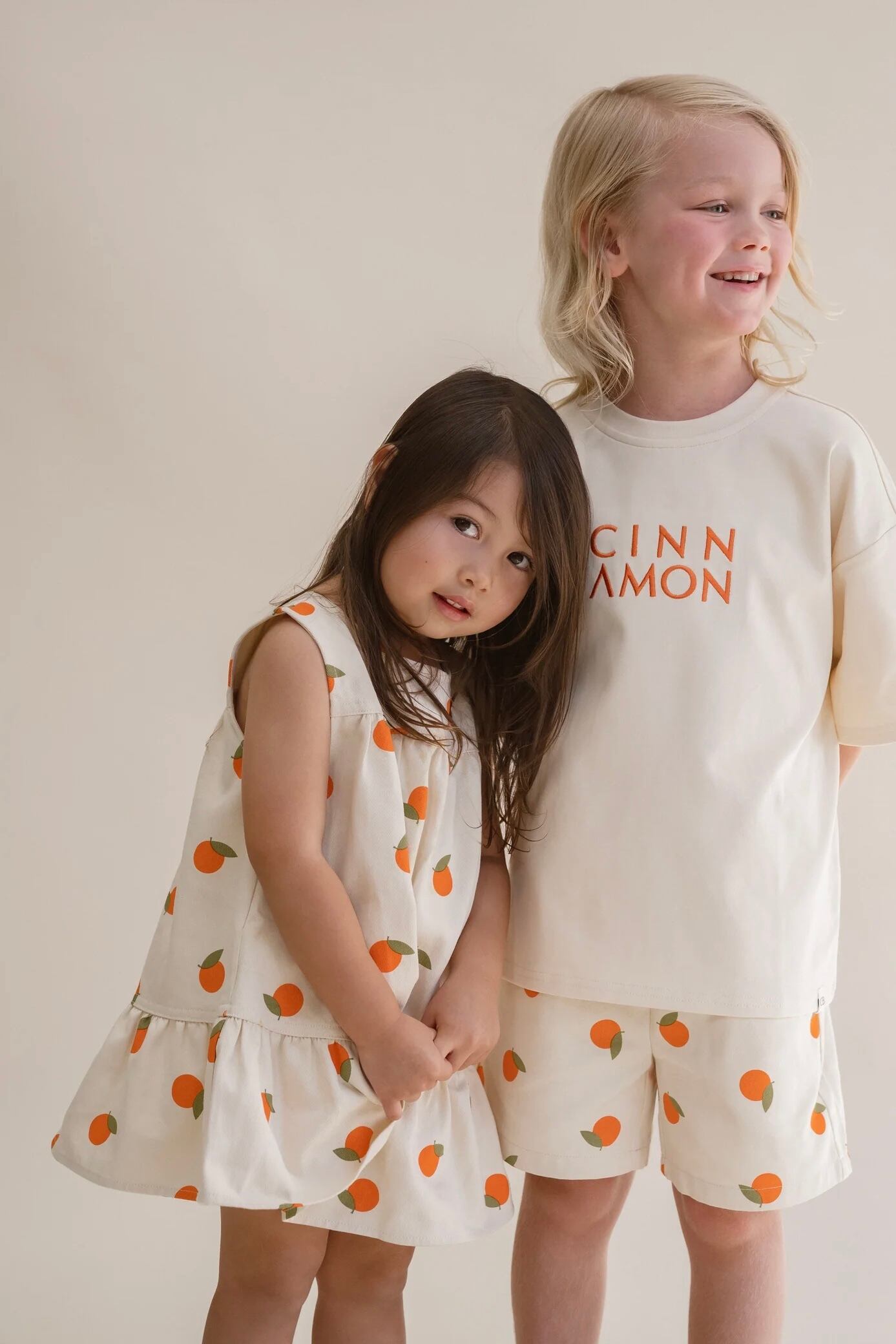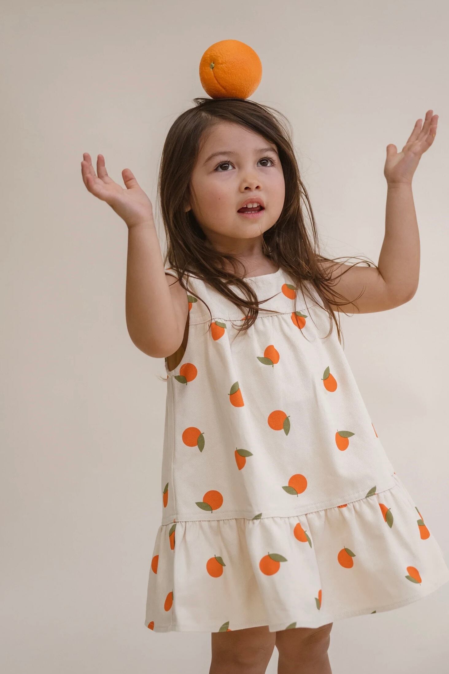甘くて遊び心いっぱいの Marmaladeツイルドレス は、100%柔らかなコットン素材で仕立てられています。ふんわり広がるスカートとオレンジ柄が特徴で、可愛らしさと快適さを兼ね備えた一着です。軽やかで通気性もよく、着心地抜群。暖かな季節のお出かけや、同じMarmaladeコレクションとのリンクコーデにもぴったりです。