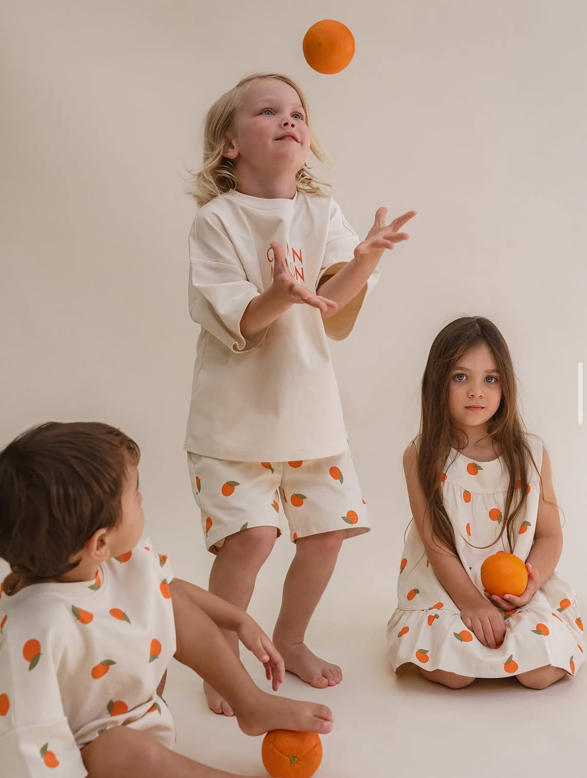 お子さまのワードローブをアップデートする、クリームカラーのオーバーサイズTシャツ。