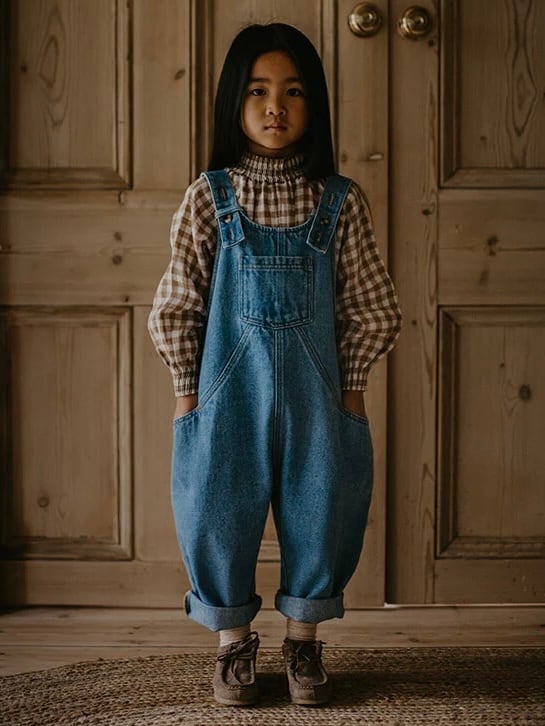 クラシックなコットンデニムで仕立てた、リラックスフィットのダンガリー。季節を通して着られる万能アイテムで、3段階で調節可能なストラップとゆったりとしたオーバーサイズのシルエットが特徴。お家でもお出かけでも、自由で快適な着心地を楽しめます。