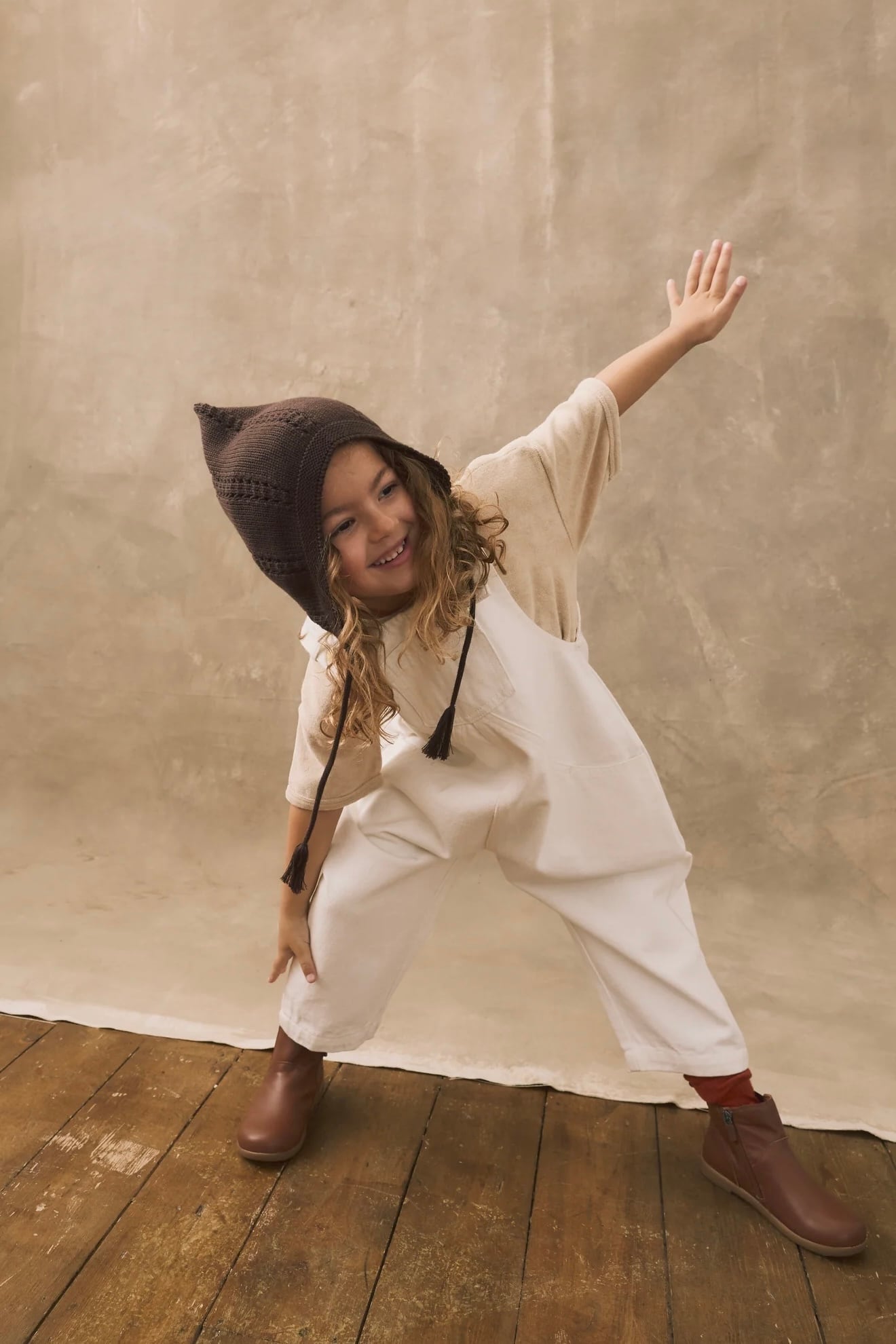 クラシックなコットンデニムで仕立てた、リラックスフィットのダンガリーにホワイトが登場しました。季節を通して着られる万能アイテムで、3段階で調節可能なストラップとゆったりとしたオーバーサイズのシルエットが特徴。お家でもお出かけでも、自由で快適な着心地を楽しめます。
