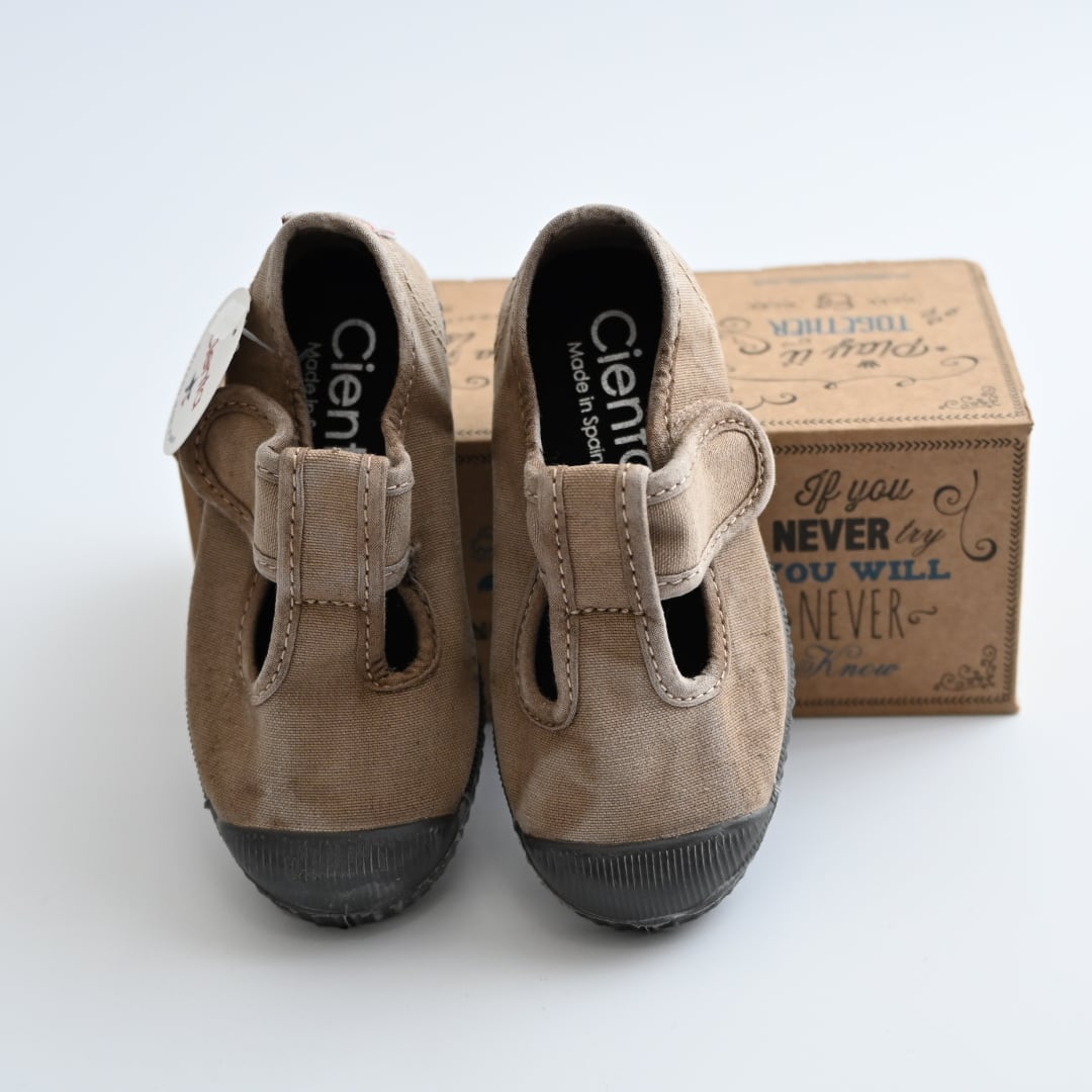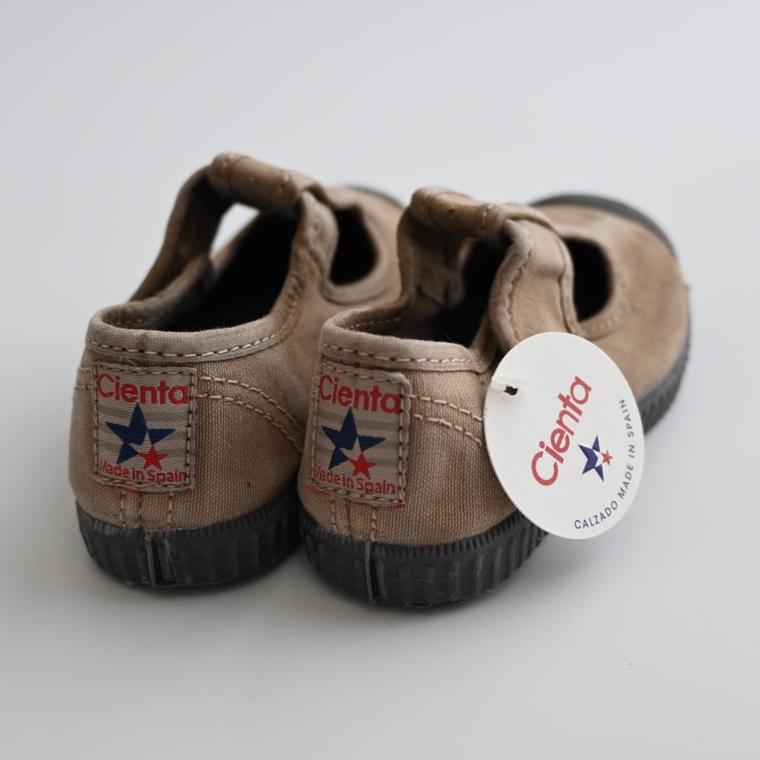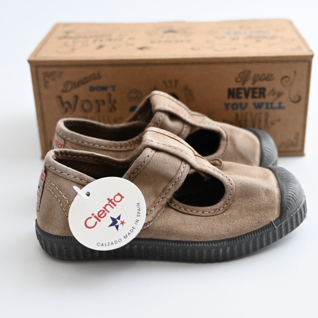 【Cienta】T-strap - ムラ染め Beige / Tストラップ[blackソール]
