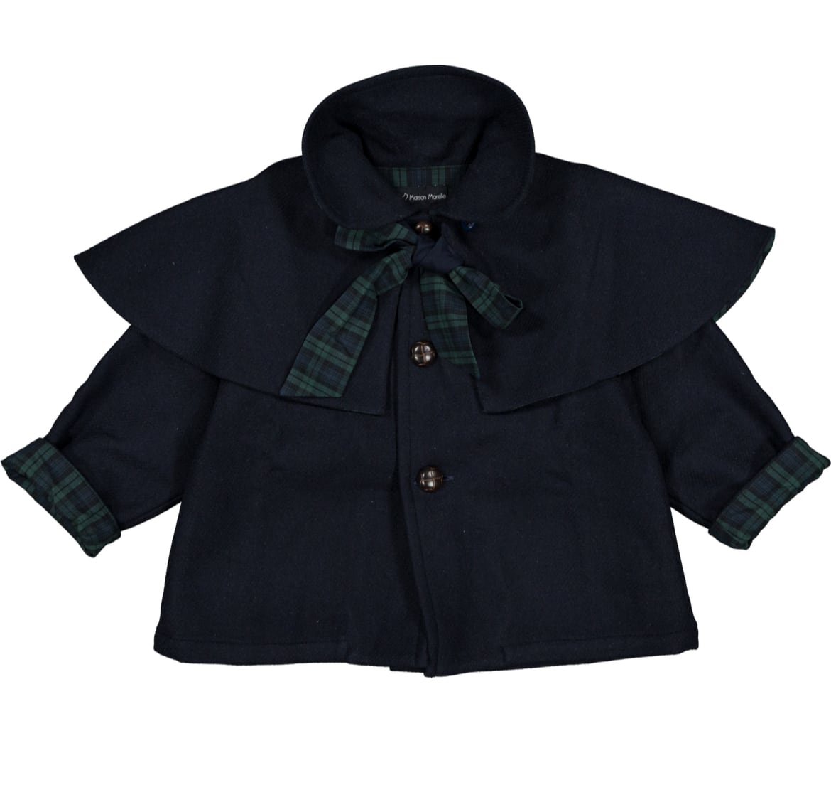予約【Maison Marelle】Coat amovible cape DARCY- blue mostly wool<18M/24M/3Y/4Y>