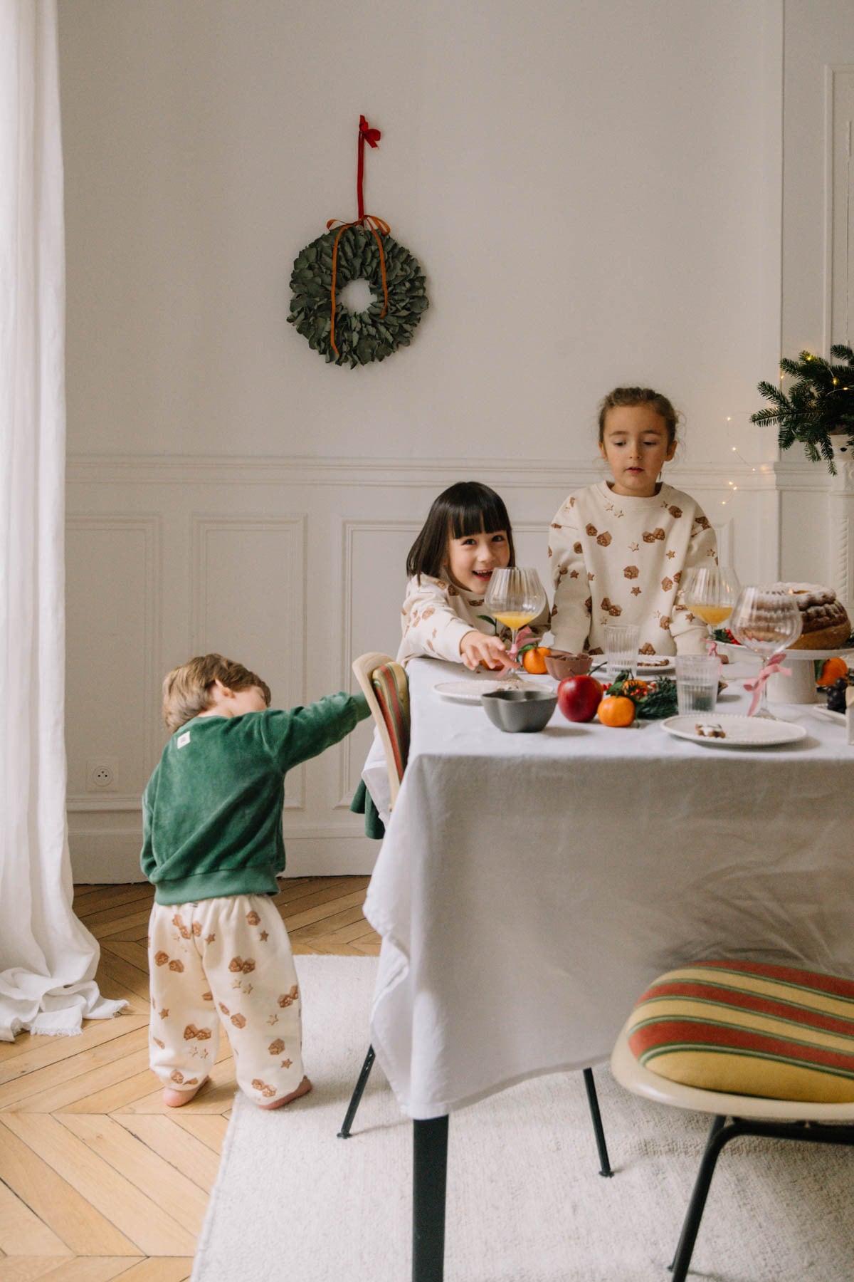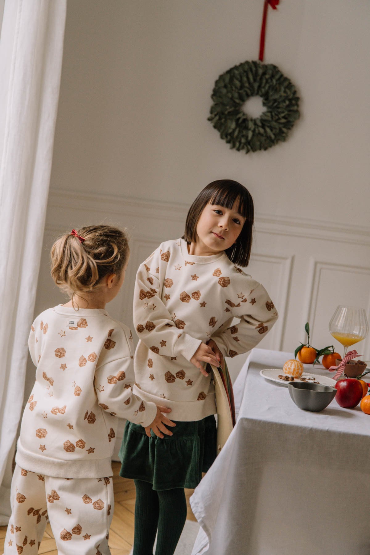 スタジオボエムのクリスマスアイテム。お菓子のおうちモチーフの可愛らしいプリントでクリスマスをより楽しくしてくれます。クリスマスギフトにもぴったりです。