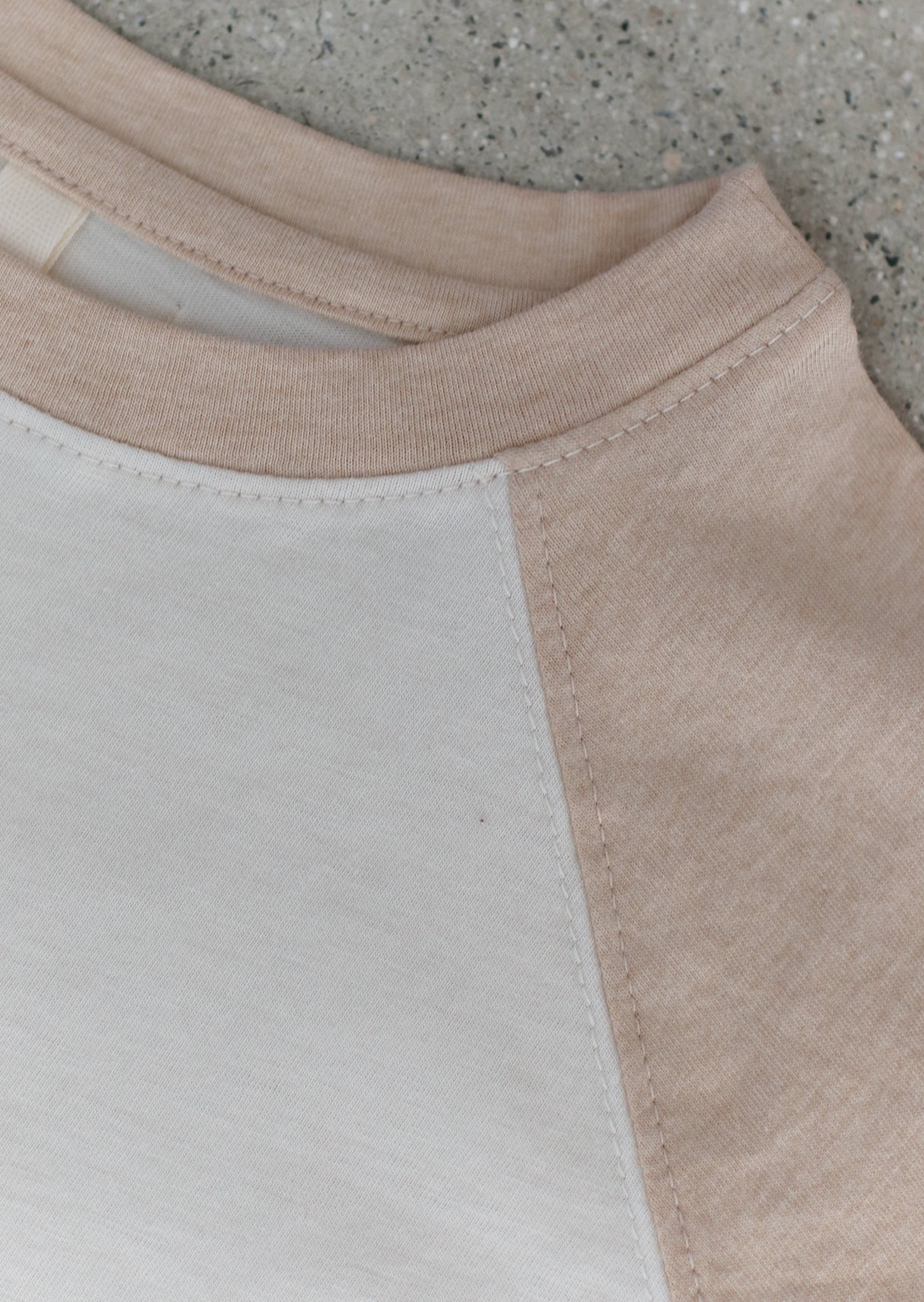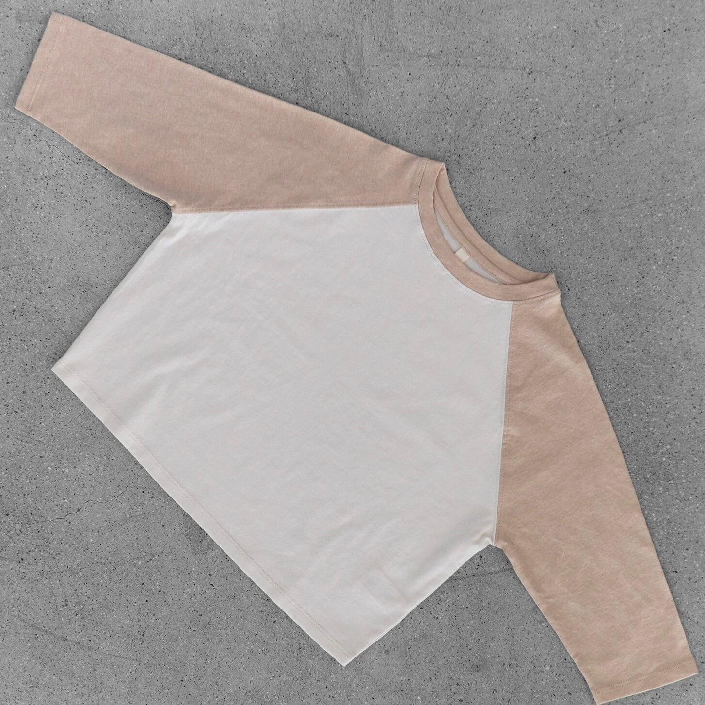 肩線が斜めに入るラグランスリーブデザインで、動きの多いお子さまも窮屈さを感じず、より快適に着用できるTシャツです。袖丈は手首までしっかり届く長さで、春夏はもちろん、季節の変わり目にも活躍する万能アイテム。
