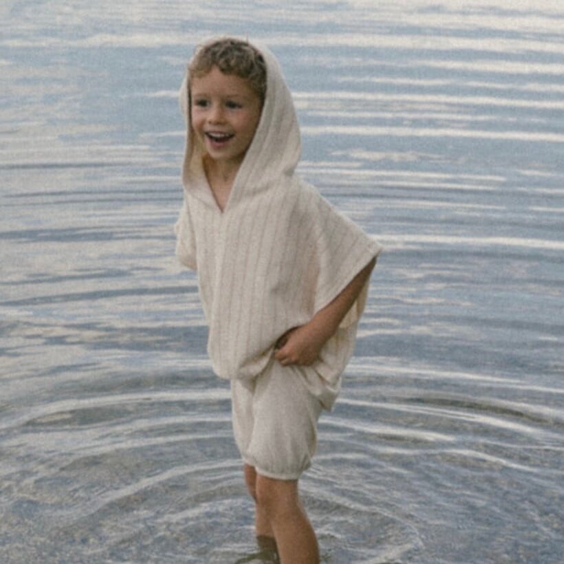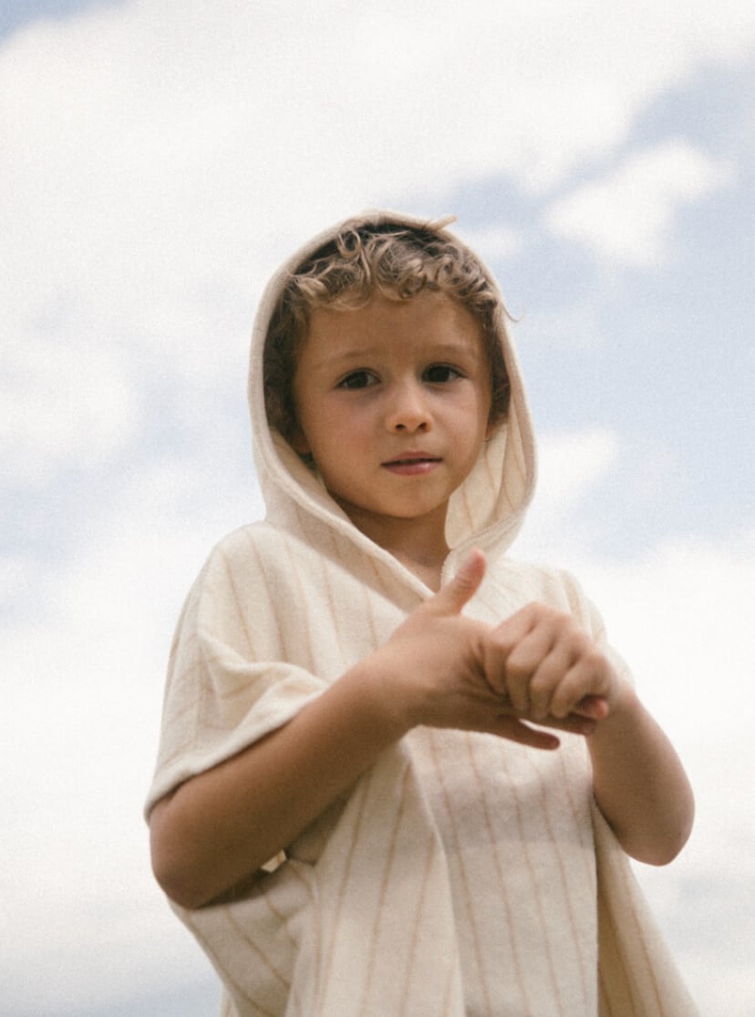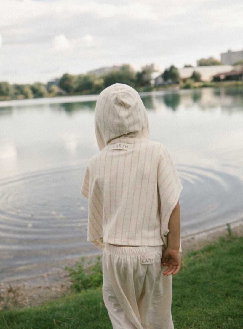 ご予約【EARTH THE ARCHIVE】Hoodie cape - Beige stripe / 3月以降入荷予定
