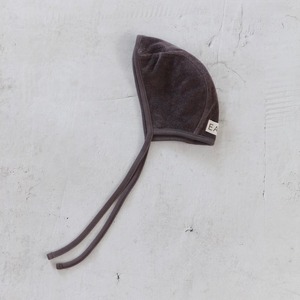 新生児〜12ヶ月まで着用できるボンネとです。厚みのあるオーガニックループテリー生地を贅沢に二重で使用し、保温性が高く、吸汗性にも優れています。