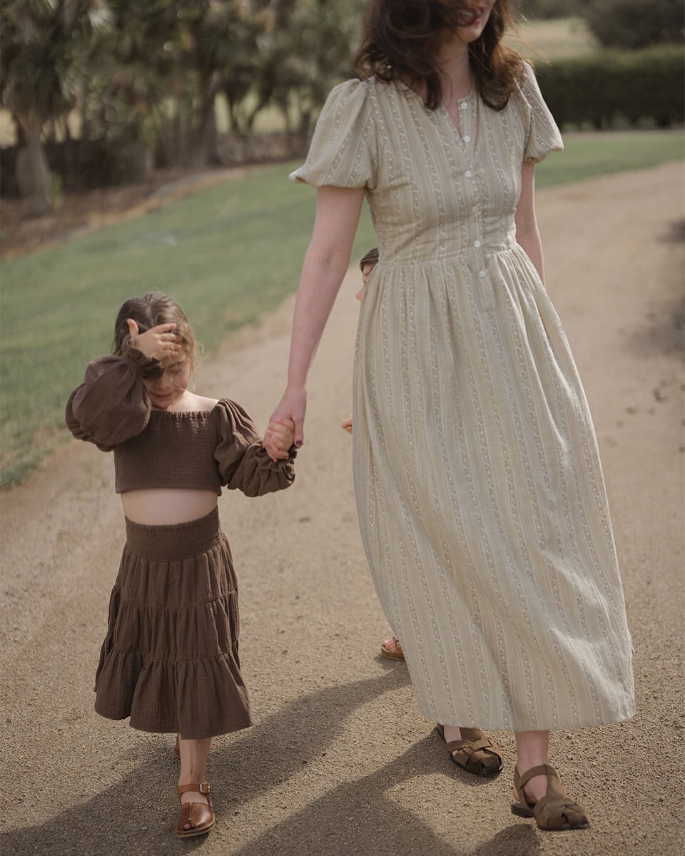 2人のママが2018年に息子と娘を想い立ち上げ、100%インドネシアで手作りされているブランドです。シンプルなデザインが魅力的で、季節やトレンドに左右されません。子供の安全を1番に考え、肌に優しくナチュラルな素材を厳選しています。また有害な素材を一切使用せず高品質な染料で丁寧に手染めされていて、環境にも配慮しているブランドです。