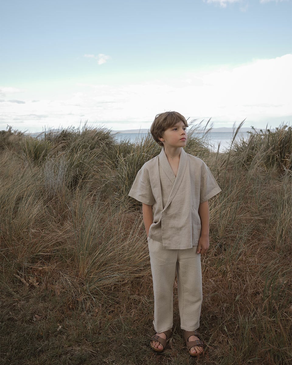 2人のママが2018年に息子と娘を想い立ち上げ、100%インドネシアで手作りされているブランドです。シンプルなデザインが魅力的で、季節やトレンドに左右されません。子供の安全を1番に考え、肌に優しくナチュラルな素材を厳選しています。また有害な素材を一切使用せず高品質な染料で丁寧に手染めされていて、環境にも配慮しているブランドです。