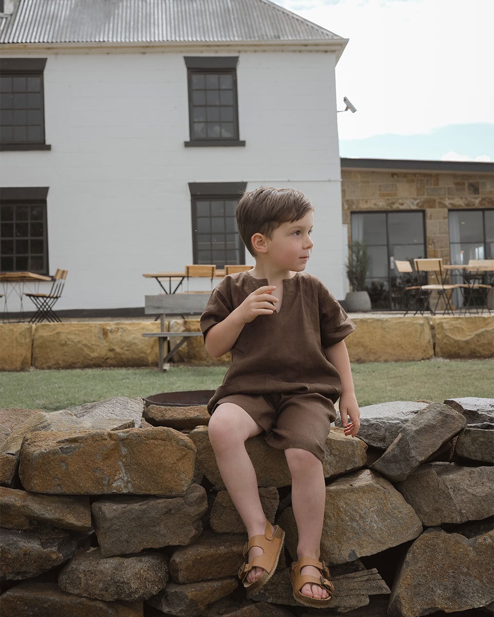 2人のママが2018年に息子と娘を想い立ち上げ、100%インドネシアで手作りされているブランドです。シンプルなデザインが魅力的で、季節やトレンドに左右されません。子供の安全を1番に考え、肌に優しくナチュラルな素材を厳選しています。また有害な素材を一切使用せず高品質な染料で丁寧に手染めされていて、環境にも配慮しているブランドです。