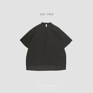 スカーフ付きの、シックなシアサッカー半袖シャツ。左胸のヨークポケットがさりげないアクセントになっています。ゆったりとしたシルエットでリラックス感がありながら、シャープな印象に仕上げた定番のバンドカラーシャツです。軽やかなシアサッカー素材で、暑い季節もさらりと心地よく着ていただけます。