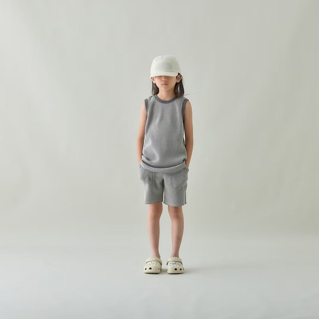 【MOUN TEN.】bicolor waffle tanktop / gray x charcoal