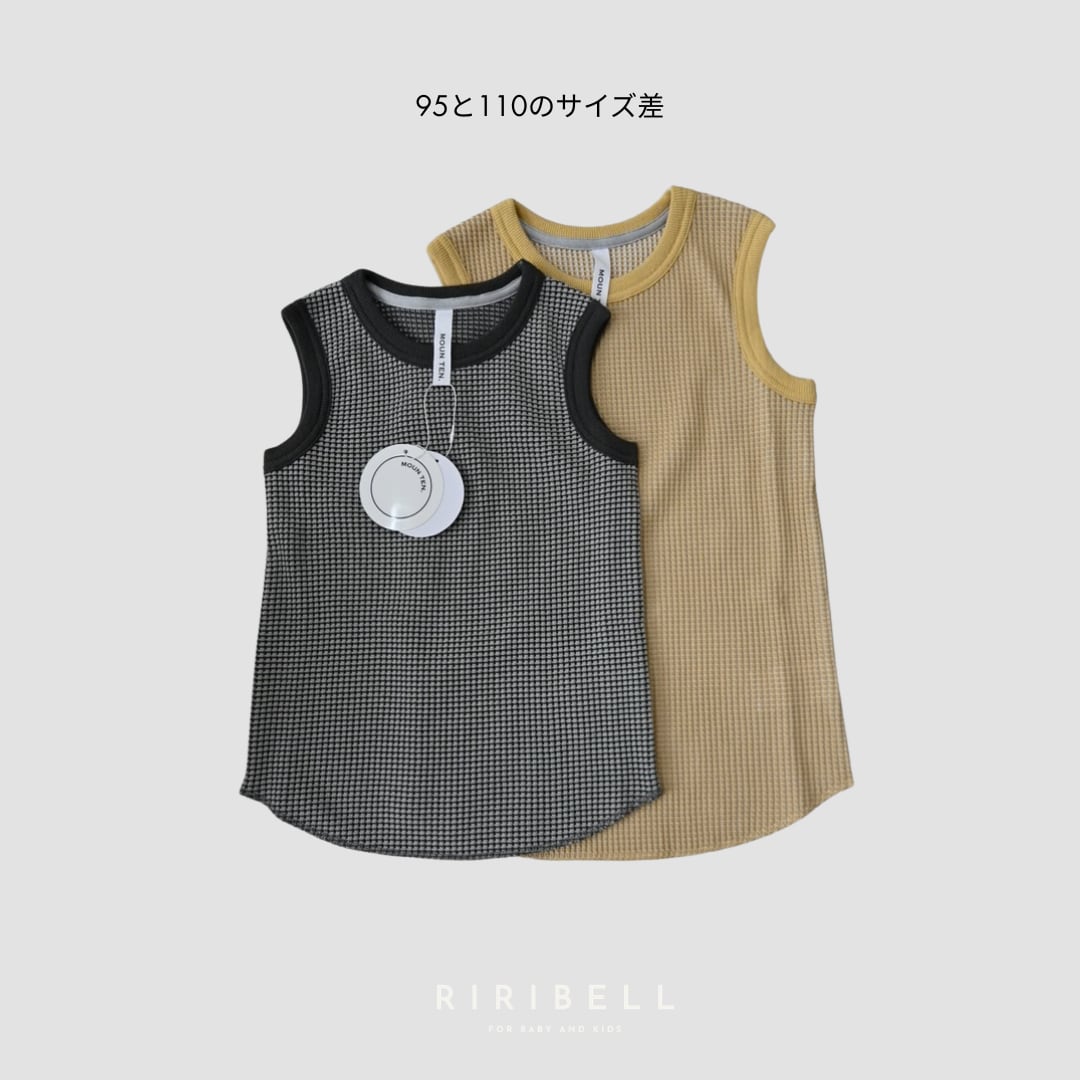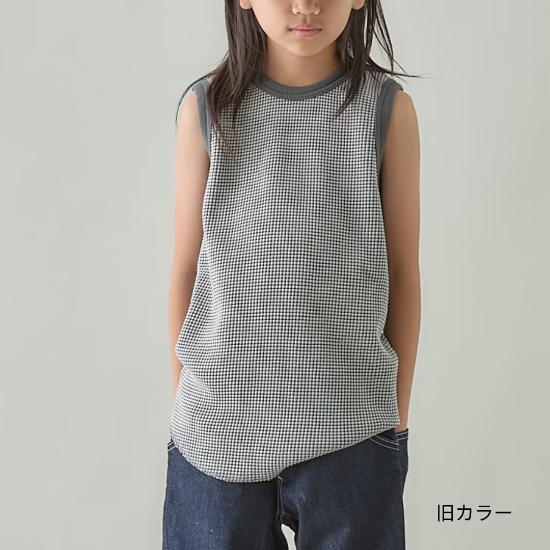 バイカラー(2配色)のワッフル素材タンクトップ。