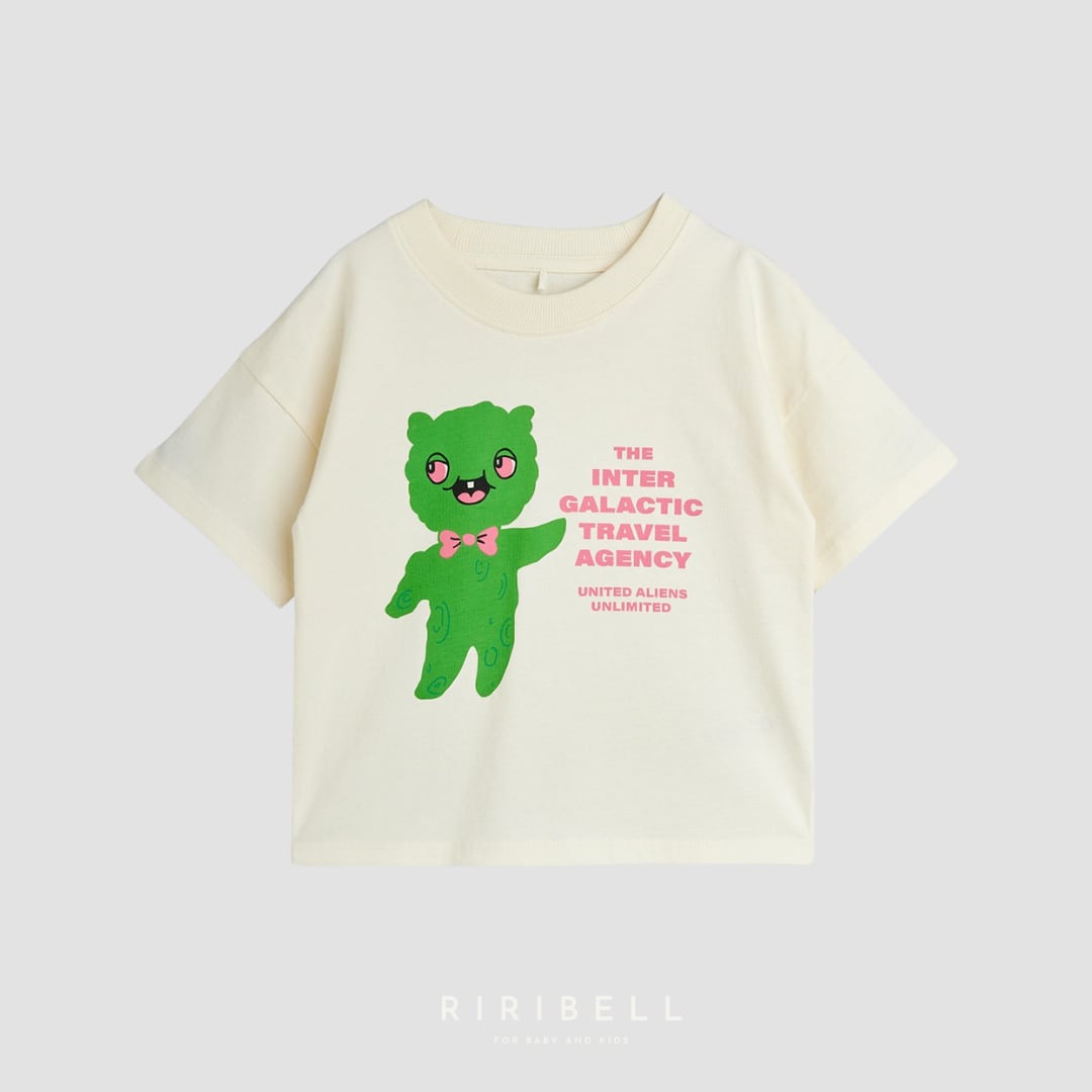 100%オーガニックコットンを使用したTシャツ。リブ仕様のネックラインと半袖デザインで、着やすさにも配慮されています。フロントには「Alien Travel Agency」のプリントをあしらった一枚です。