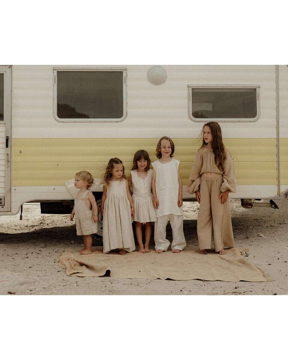 2人のママが2018年に息子と娘を想い立ち上げ、100%インドネシアで手作りされているブランドです。シンプルなデザインが魅力的で、季節やトレンドに左右されません。子供の安全を1番に考え、肌に優しくナチュラルな素材を厳選しています。また有害な素材を一切使用せず高品質な染料で丁寧に手染めされていて、環境にも配慮しているブランドです。
