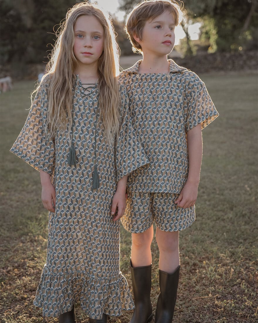 2人のママが2018年に息子と娘を想い立ち上げ、100%インドネシアで手作りされているブランドです。シンプルなデザインが魅力的で、季節やトレンドに左右されません。子供の安全を1番に考え、肌に優しくナチュラルな素材を厳選しています。また有害な素材を一切使用せず高品質な染料で丁寧に手染めされていて、環境にも配慮しているブランドです。