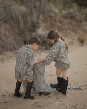 2人のママが2018年に息子と娘を想い立ち上げ、100%インドネシアで手作りされているブランドです。シンプルなデザインが魅力的で、季節やトレンドに左右されません。子供の安全を1番に考え、肌に優しくナチュラルな素材を厳選しています。また有害な素材を一切使用せず高品質な染料で丁寧に手染めされていて、環境にも配慮しているブランドです。