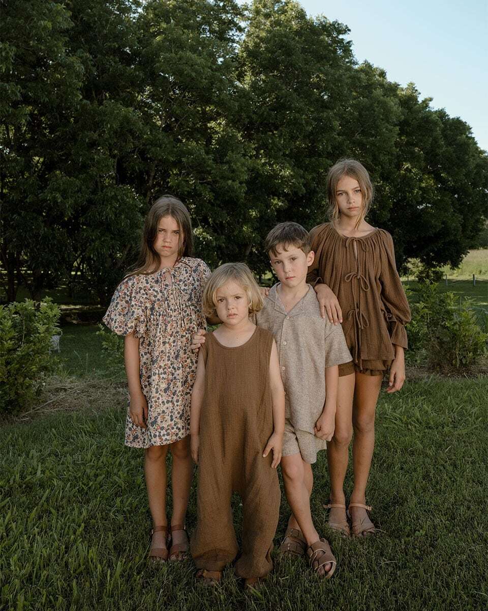 2人のママが2018年に息子と娘を想い立ち上げ、100%インドネシアで手作りされているブランドです。シンプルなデザインが魅力的で、季節やトレンドに左右されません。子供の安全を1番に考え、肌に優しくナチュラルな素材を厳選しています。また有害な素材を一切使用せず高品質な染料で丁寧に手染めされていて、環境にも配慮しているブランドです。