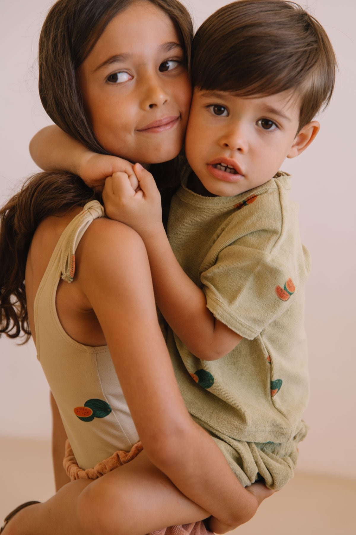 予約/送料無料【STUDIO BOHEME】TSHIRT ESSENTIAL - GOLDEN GREEN / WATERMELON (terry) 18m,24m