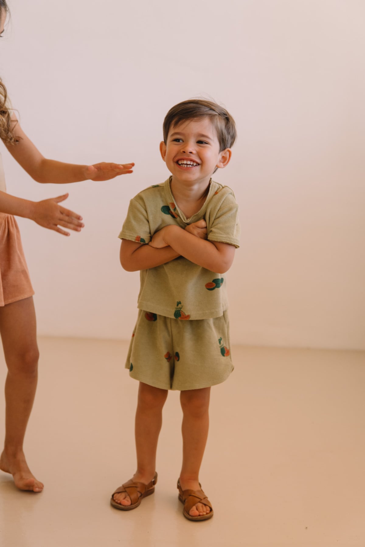 予約/送料無料【STUDIO BOHEME】TSHIRT ESSENTIAL - GOLDEN GREEN / WATERMELON (terry) 36m,4y,6y