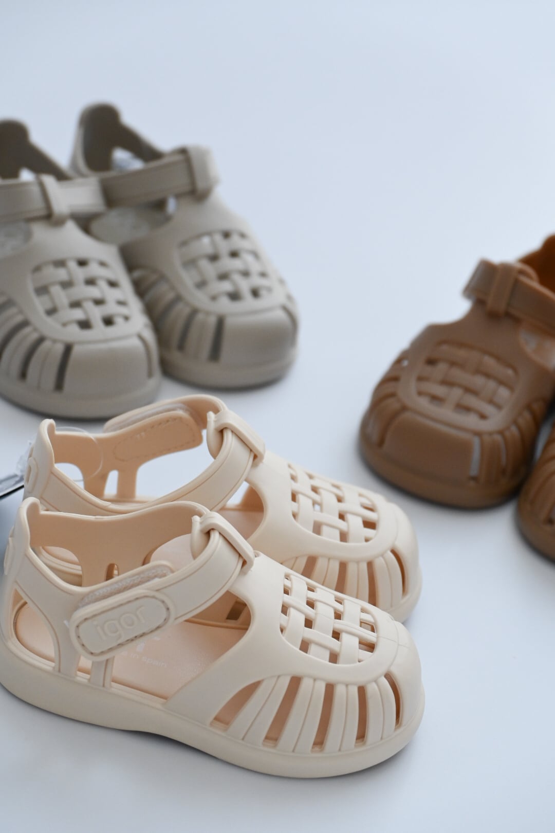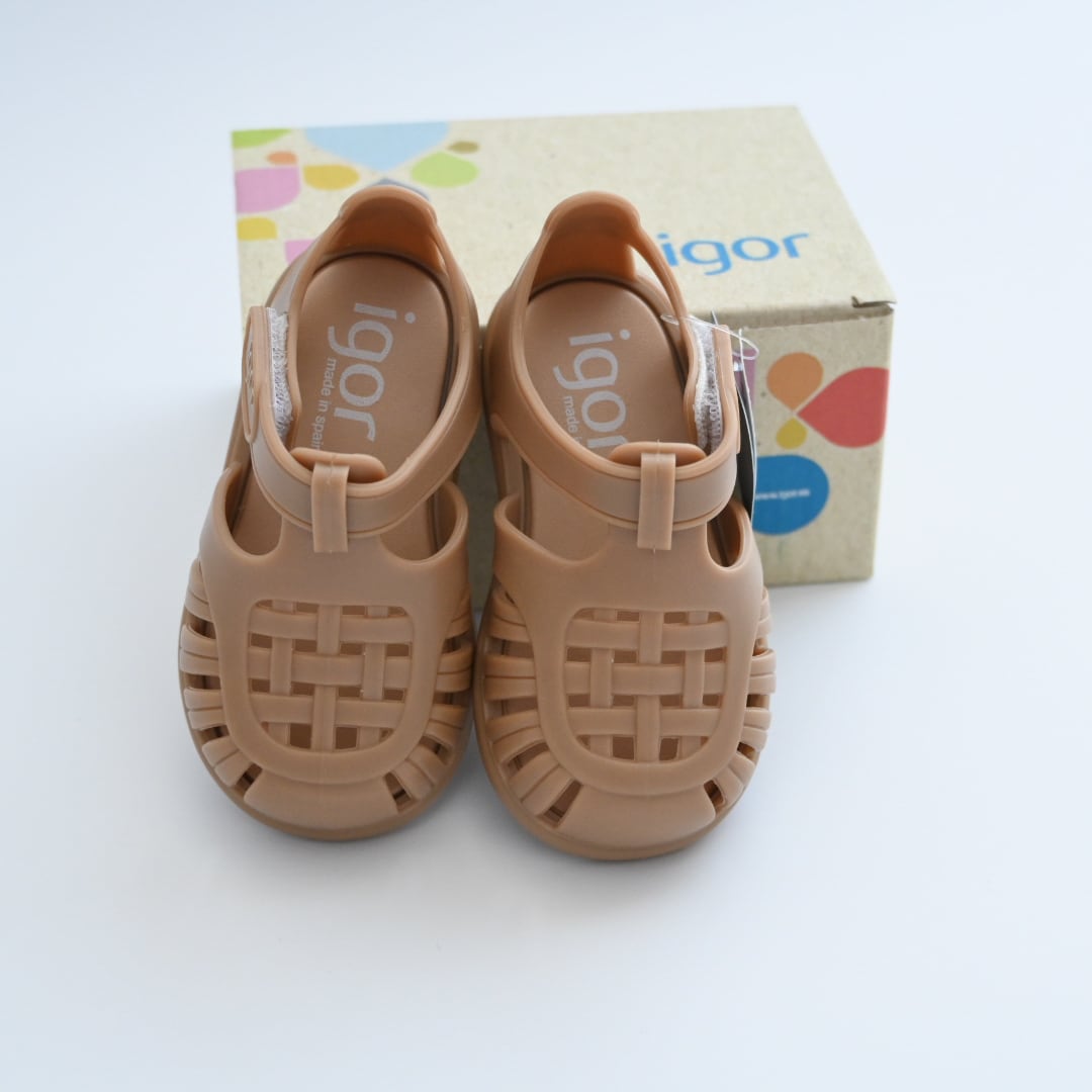 高品質なラバー素材とデザイン性が大人気のスペイン発シューズブランドigor(イゴール)。マットな質感でどんなお洋服にも合わせやすいカラーリングが魅力的です。海やプール、お子様の水遊びにもおすすめですが、靴下と合わせればまた違った雰囲気のコーディネートもお楽しみいただけます。