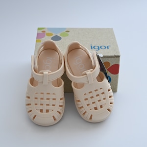 高品質なラバー素材とデザイン性が大人気のスペイン発シューズブランドigor(イゴール)。マットな質感でどんなお洋服にも合わせやすいカラーリングが魅力的です。海やプール、お子様の水遊びにもおすすめですが、靴下と合わせればまた違った雰囲気のコーディネートもお楽しみいただけます。
