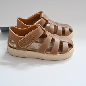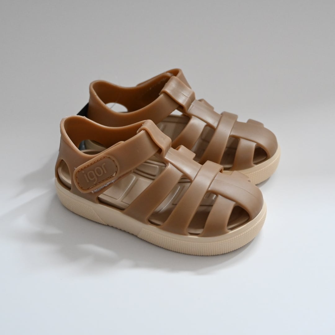 高品質なラバー素材とデザイン性が大人気のスペイン発シューズブランドigor(イゴール)。マットな質感でどんなお洋服にも合わせやすいカラーリングが魅力的です。海やプール、お子様の水遊びにもおすすめですが、靴下と合わせればまた違った雰囲気のコーディネートもお楽しみいただけます。