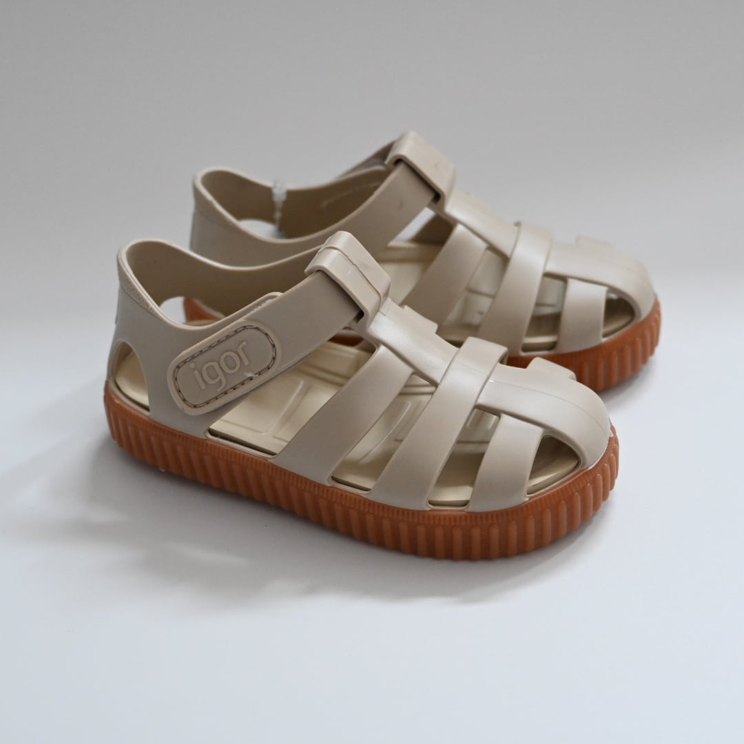 高品質なラバー素材とデザイン性が大人気のスペイン発シューズブランドigor(イゴール)。マットな質感でどんなお洋服にも合わせやすいカラーリングが魅力的です。海やプール、お子様の水遊びにもおすすめですが、靴下と合わせればまた違った雰囲気のコーディネートもお楽しみいただけます。