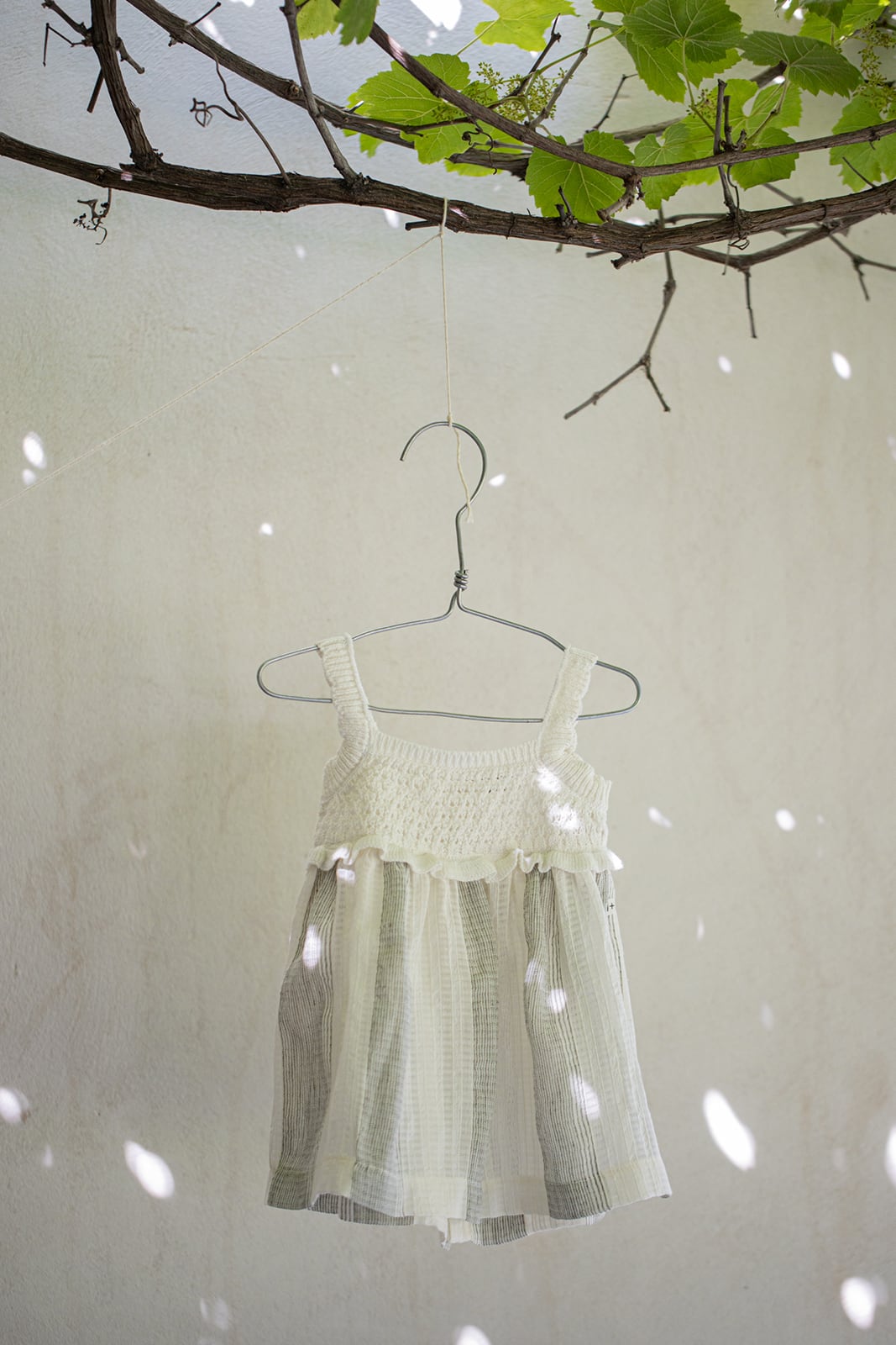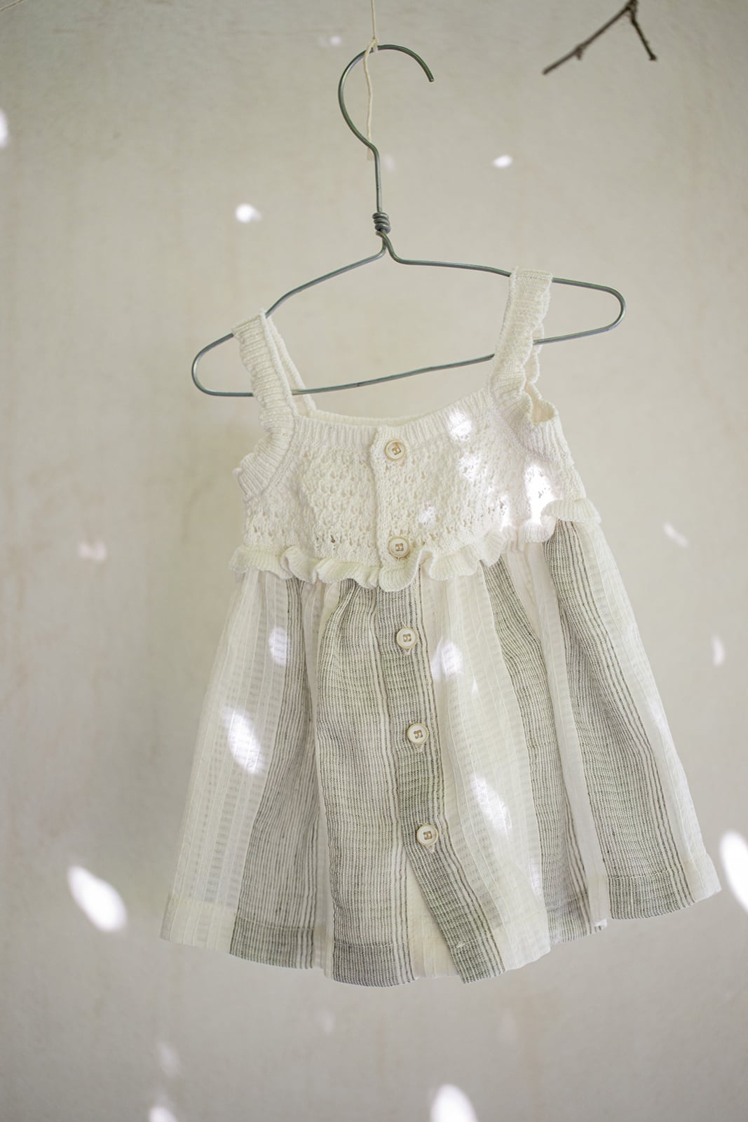 スカート部分はストライプ柄のコットンリネンボイル生地を使用。