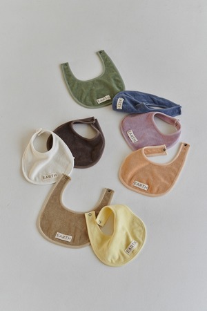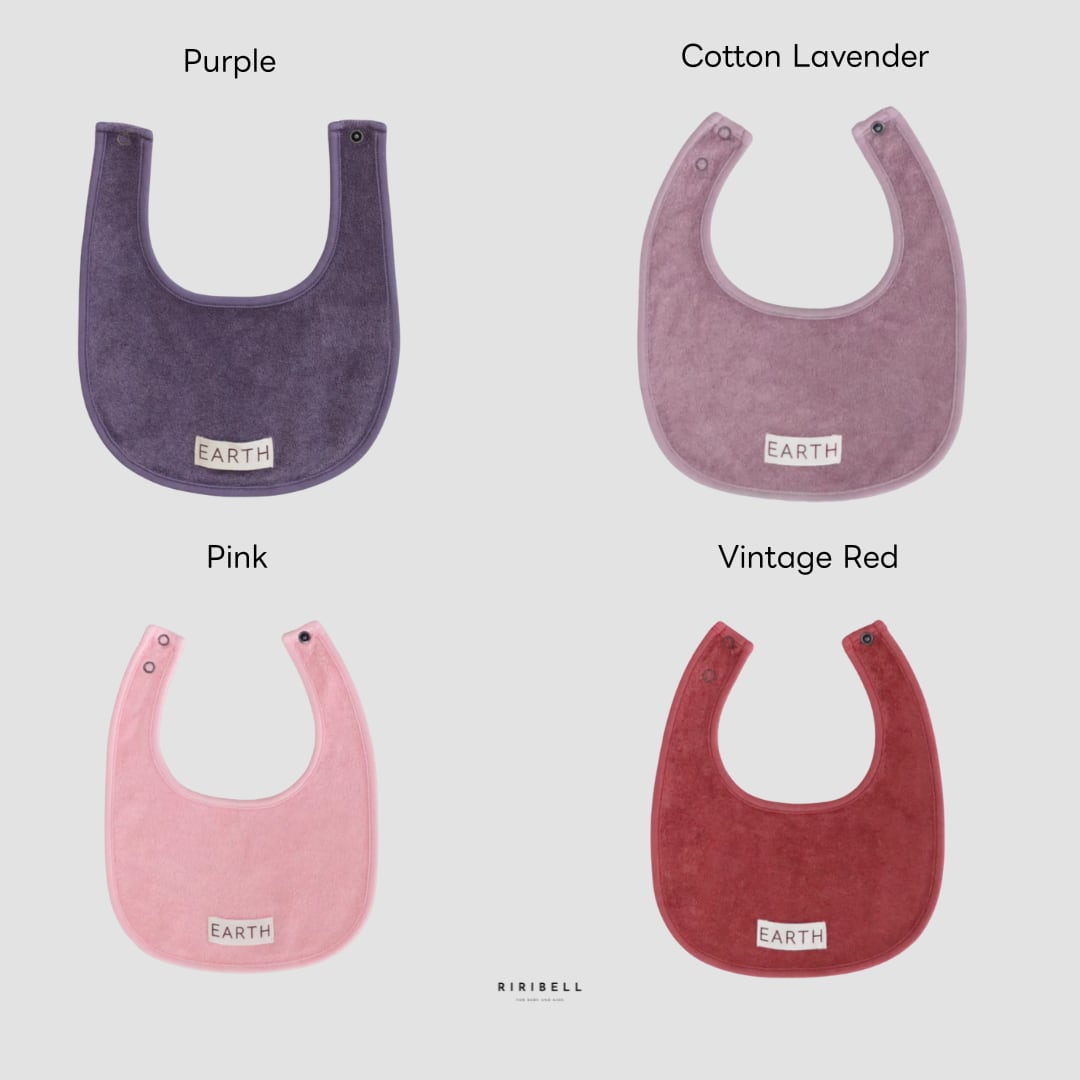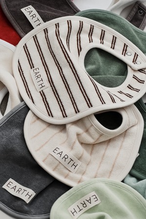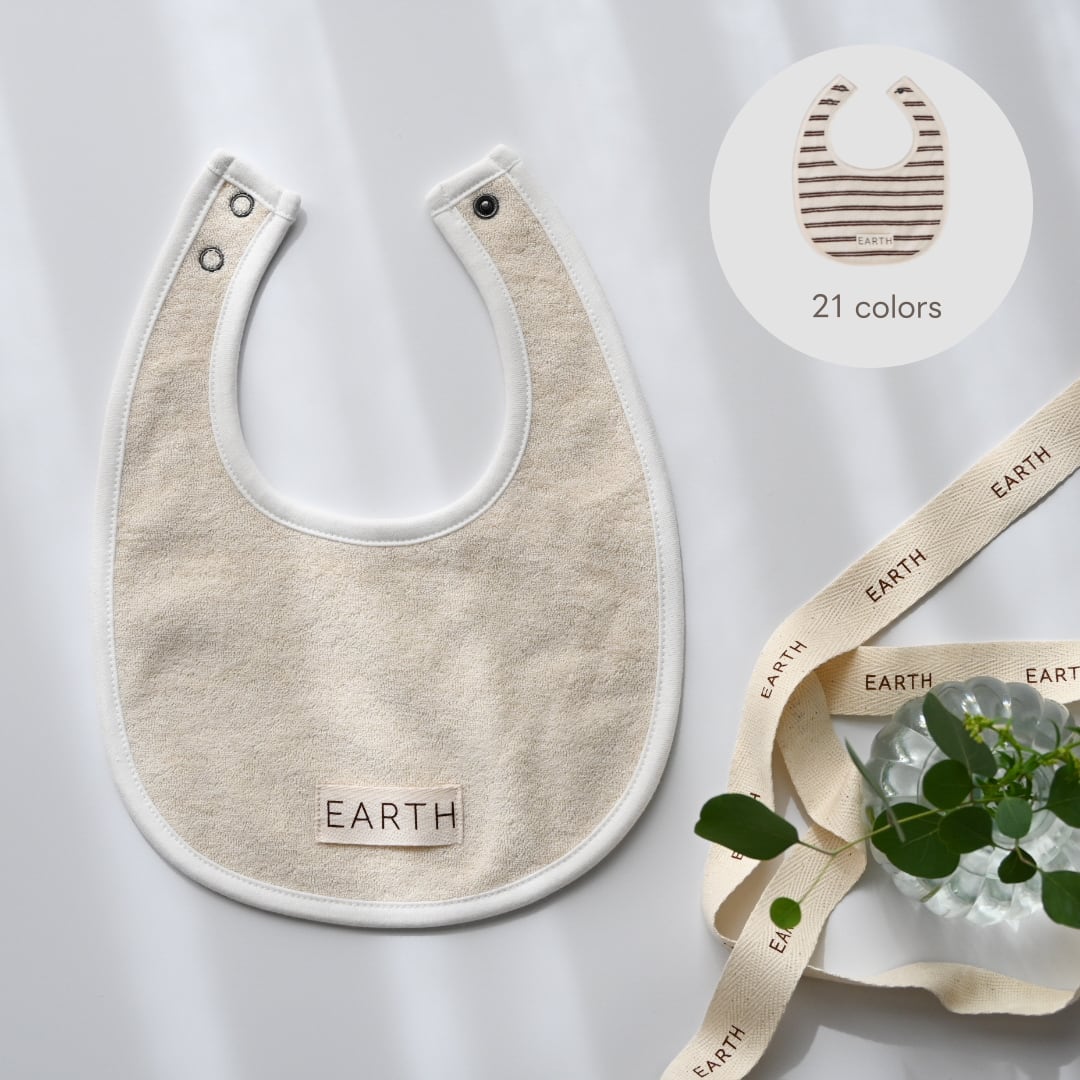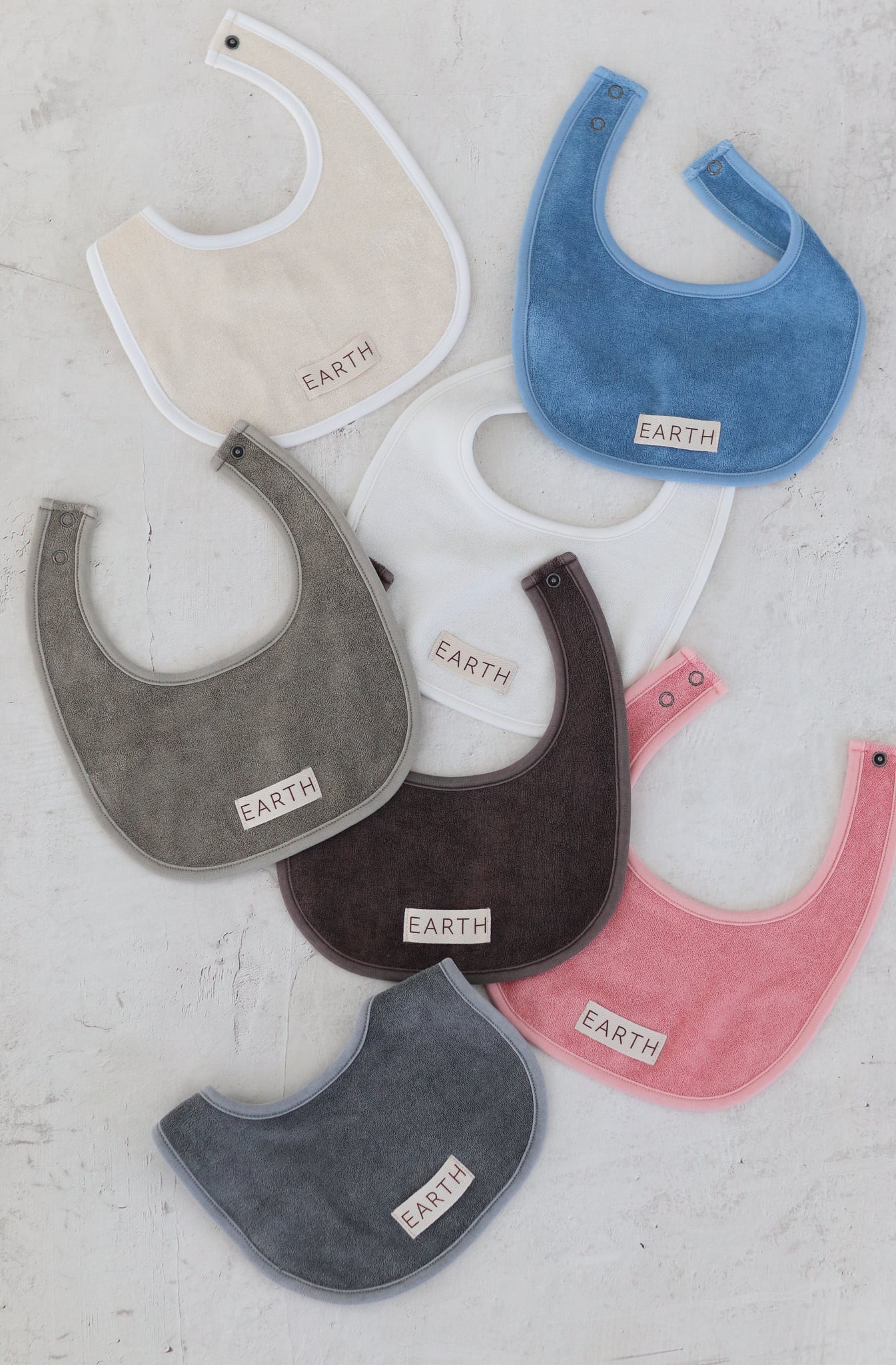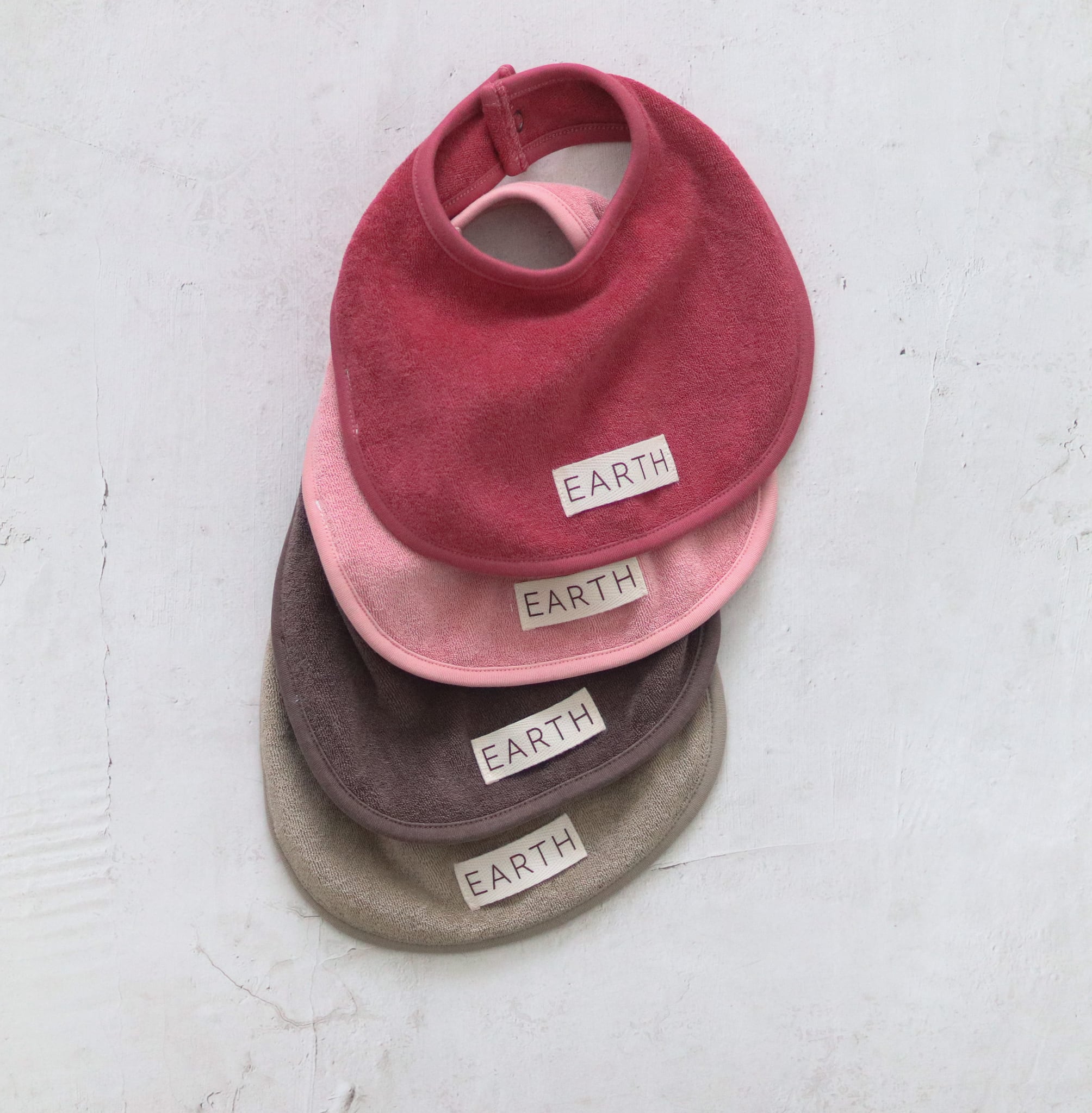草木染めされたオーガニックコットンのパイル生地で作られた、やさしい肌触りのビブです。