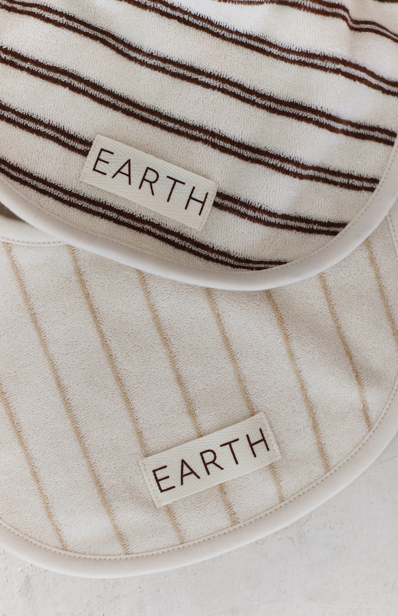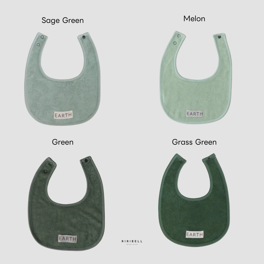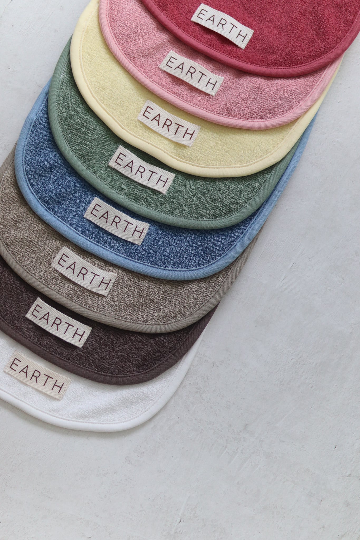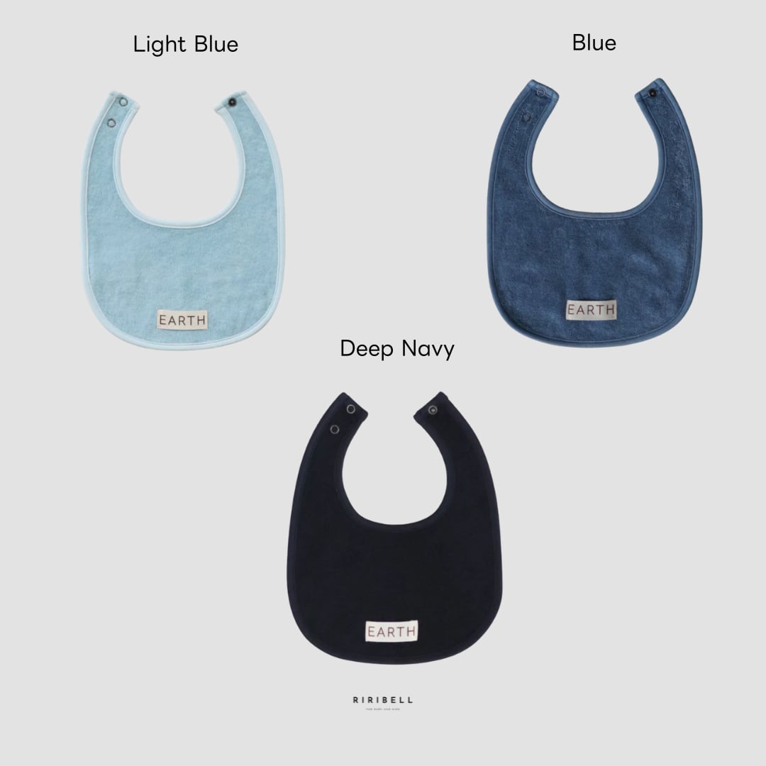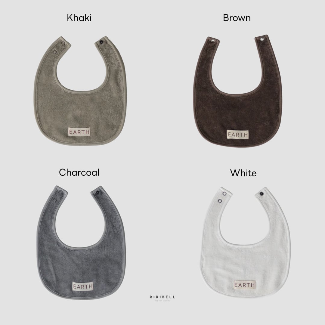 草木染めされたオーガニックコットンのパイル生地で作られた、やさしい肌触りのビブです。