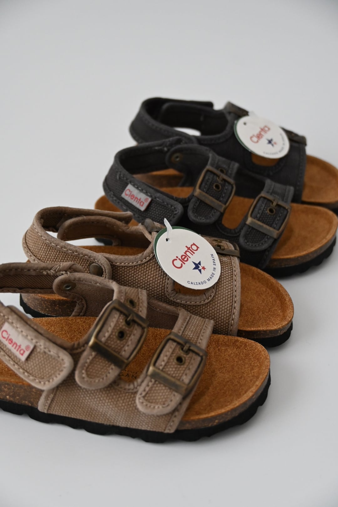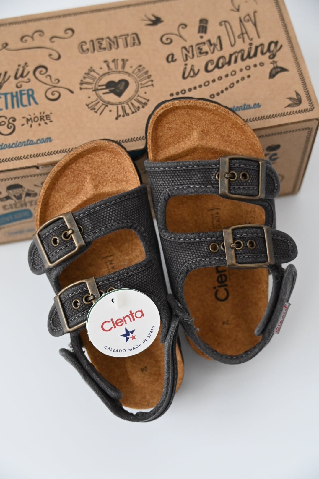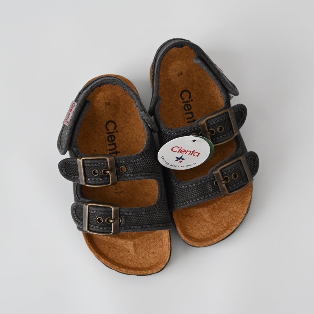 【Cienta】Double strap sandal - Negro(ムラ染ブラック) サンダル