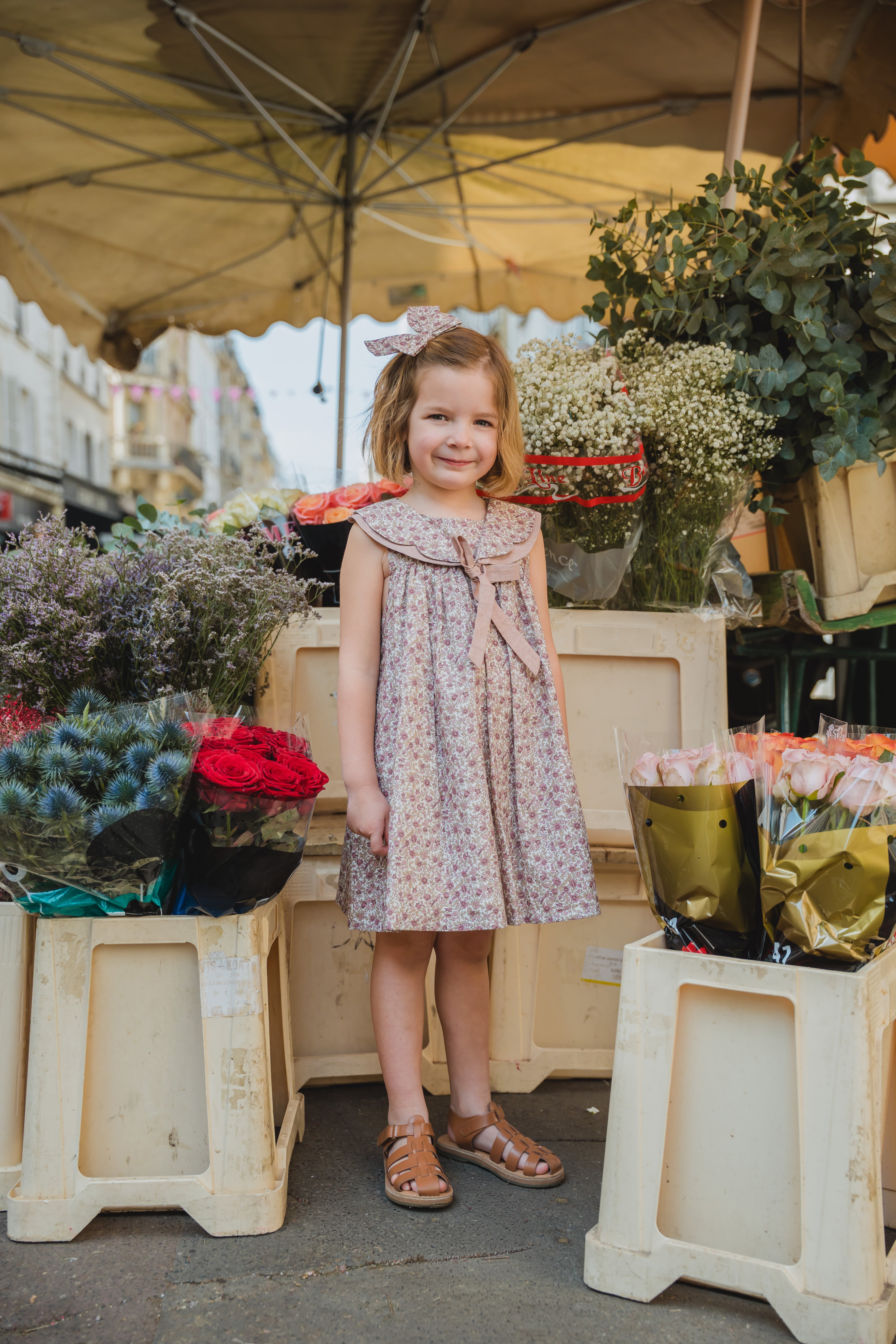 予約【Maison Marelle】Dress GARNIER - pink flowers / 6Y~12Y/ 6月上旬以降入荷