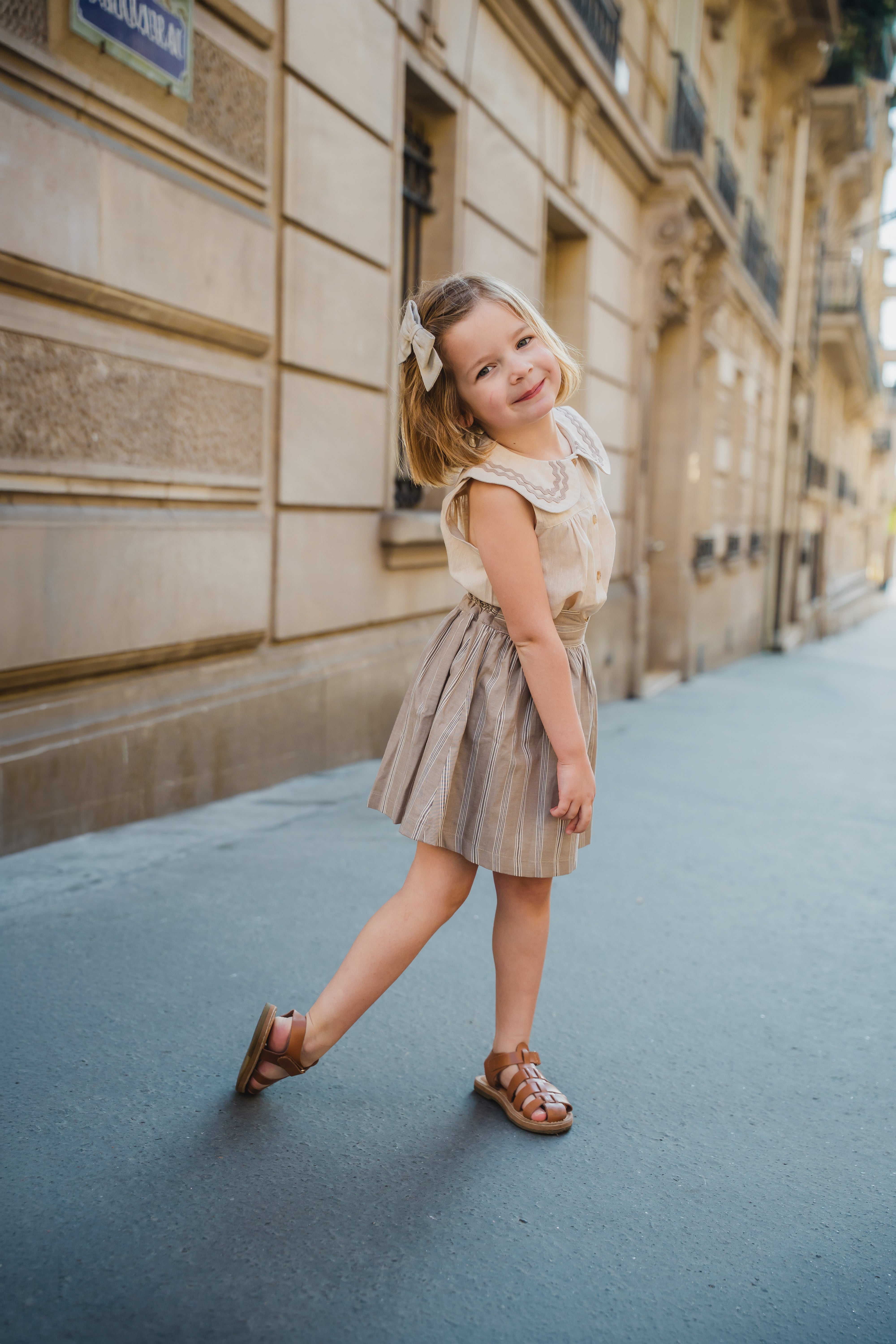 予約【Maison Marelle】Skirt TOURNON - dark beige stripes / 18M~5Y / 6月上旬以降入荷
