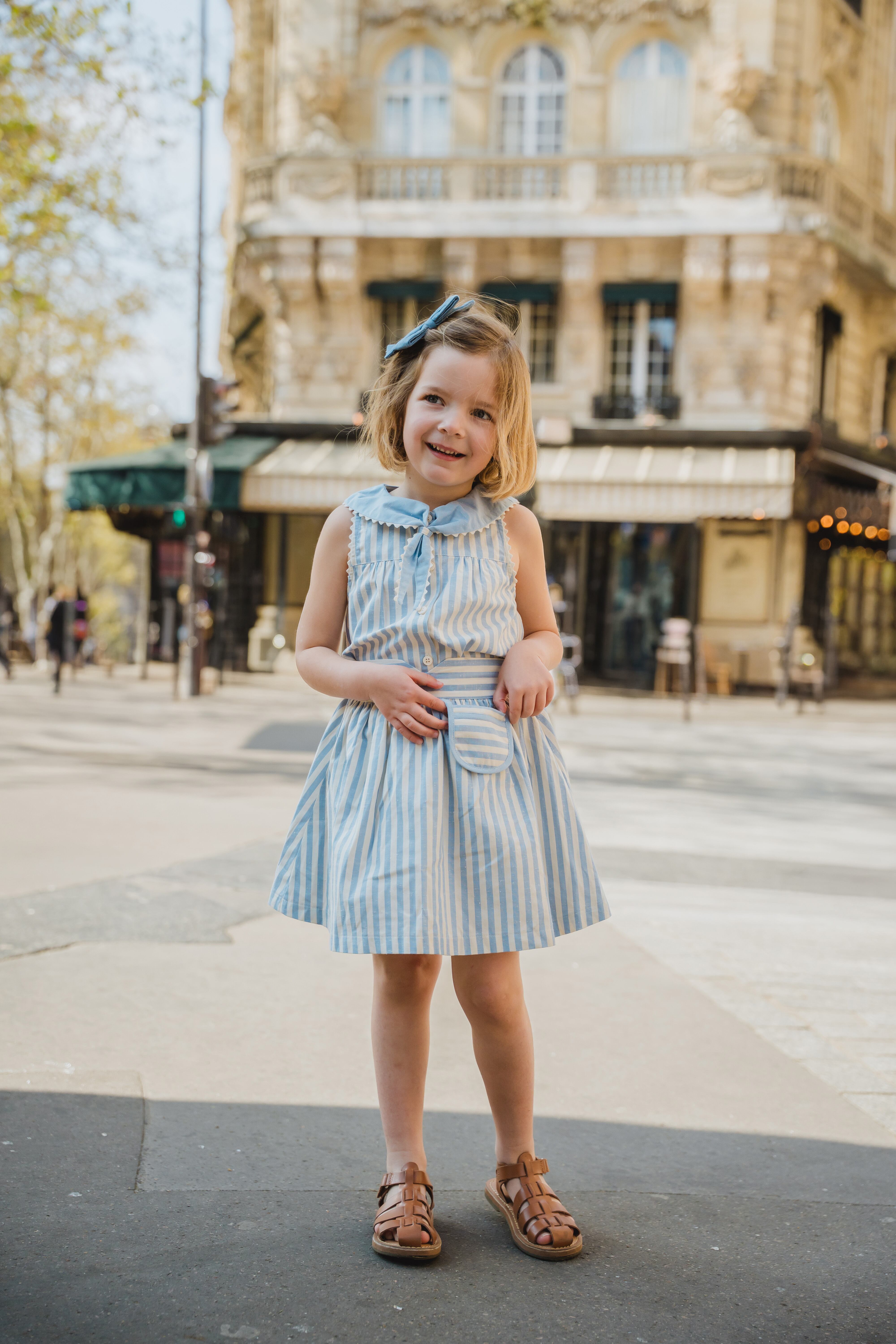 予約【Maison Marelle】Skirt TOURNON - wide blue stripes / 6Y~12Y/ 6月上旬以降入荷