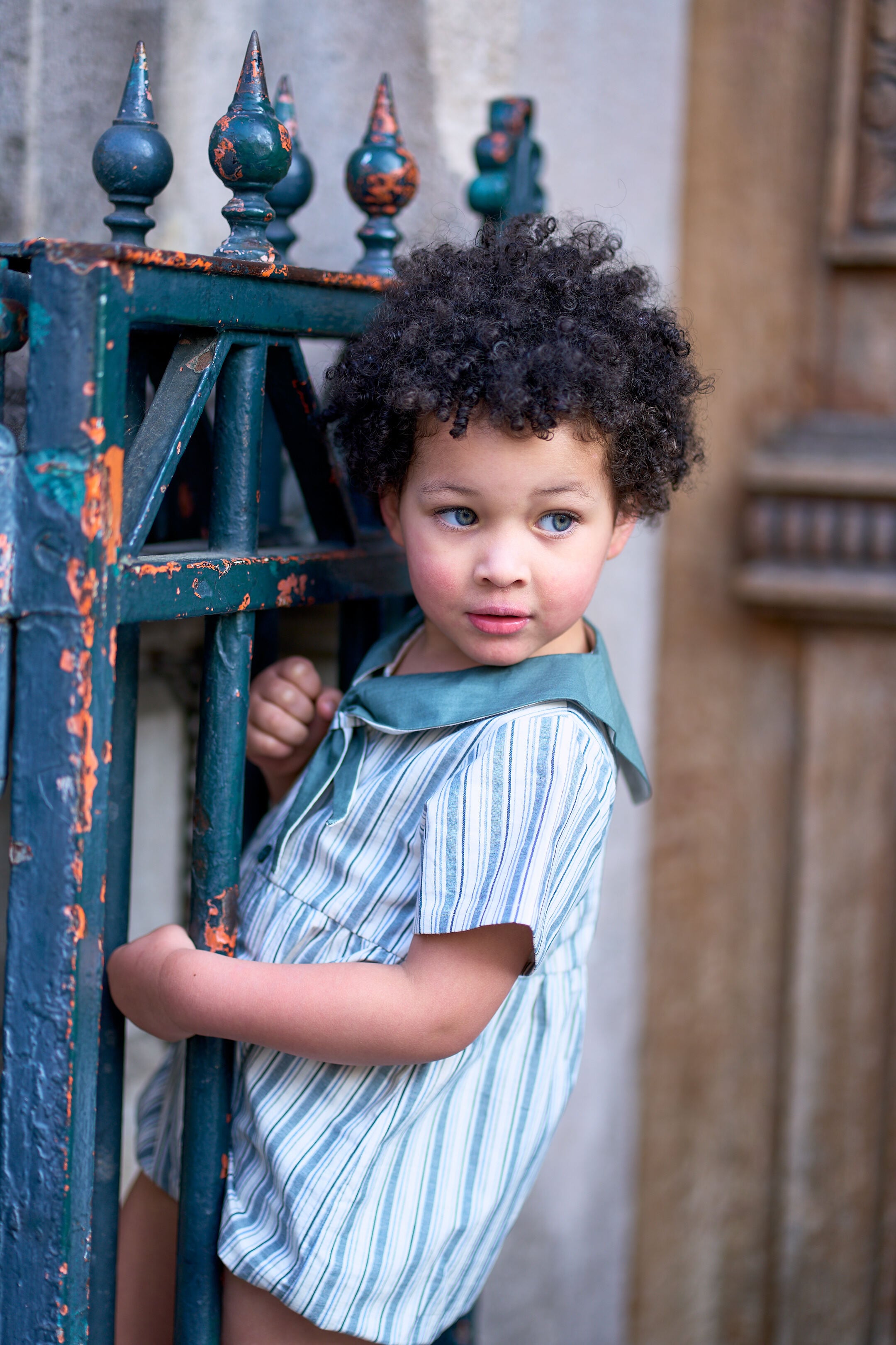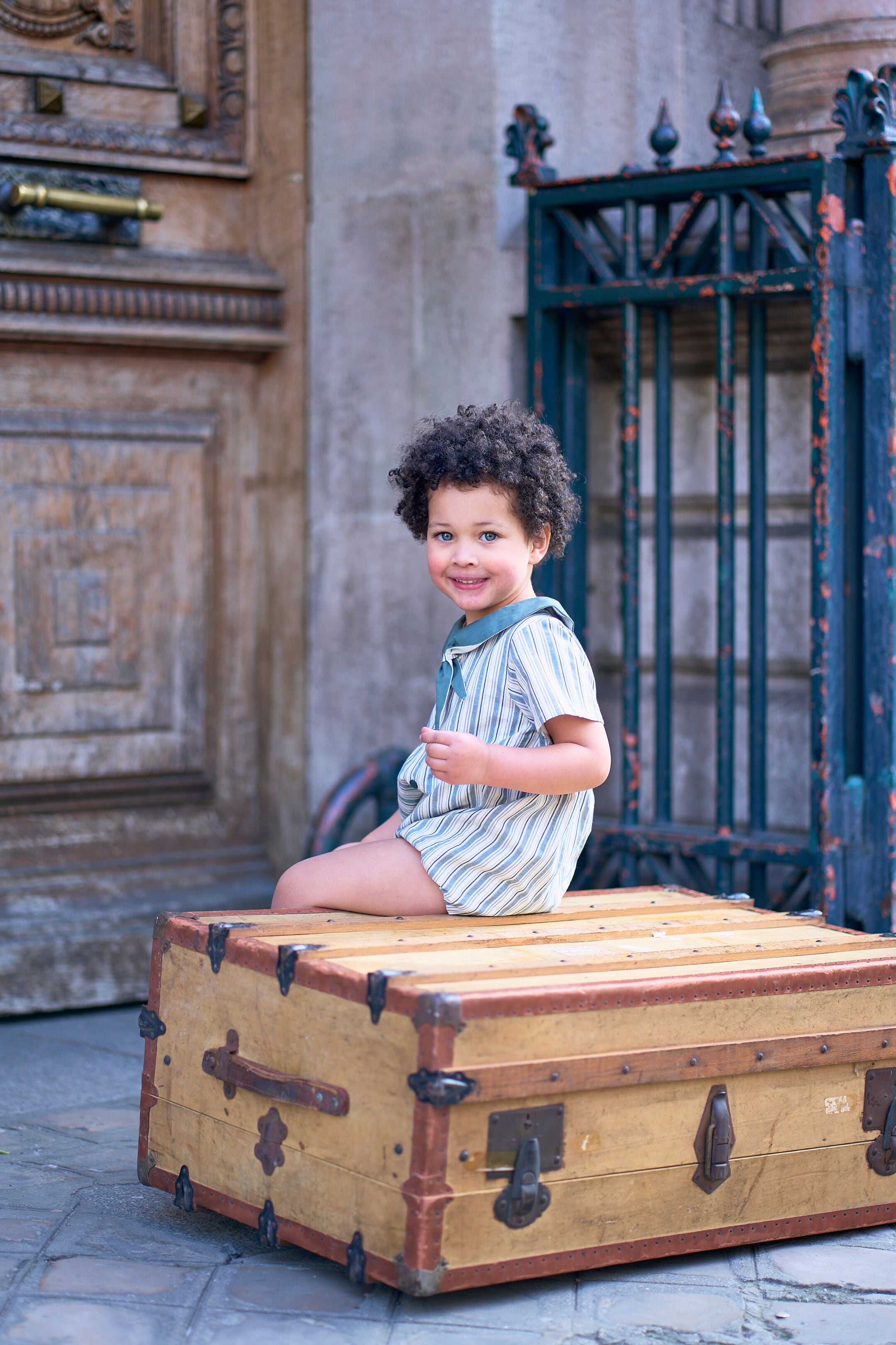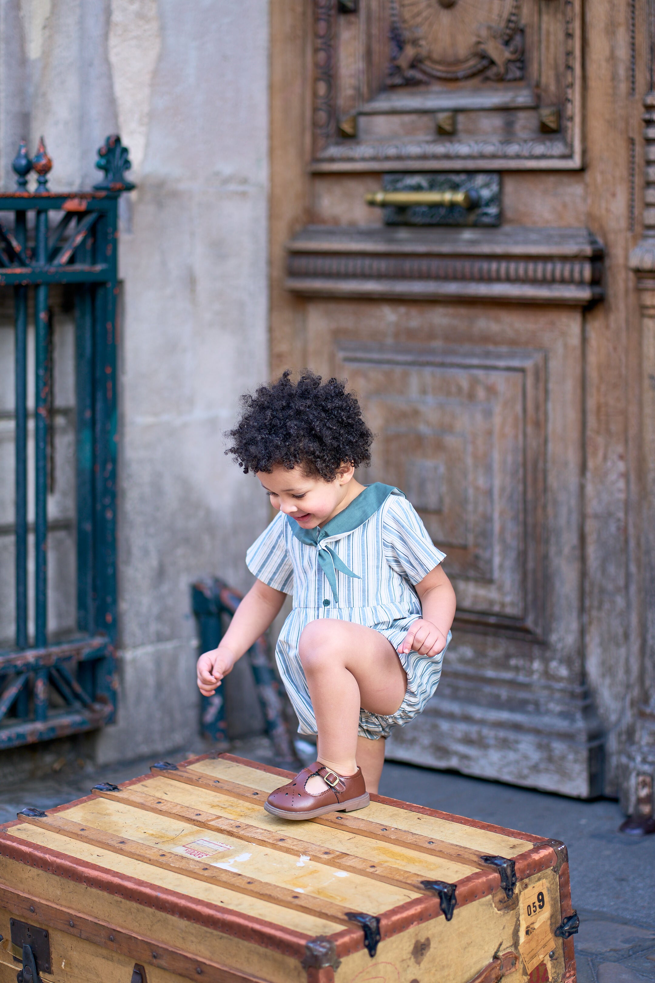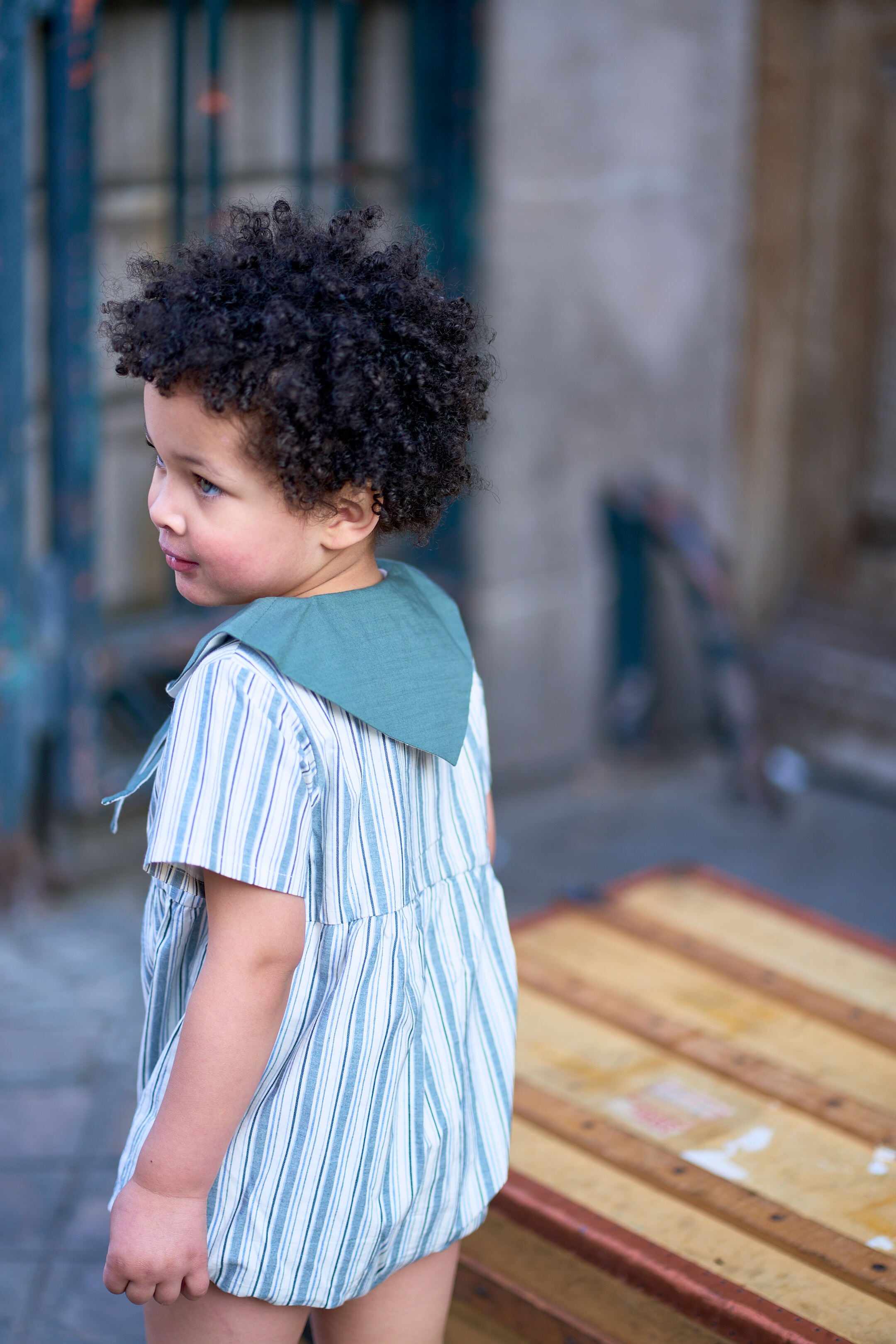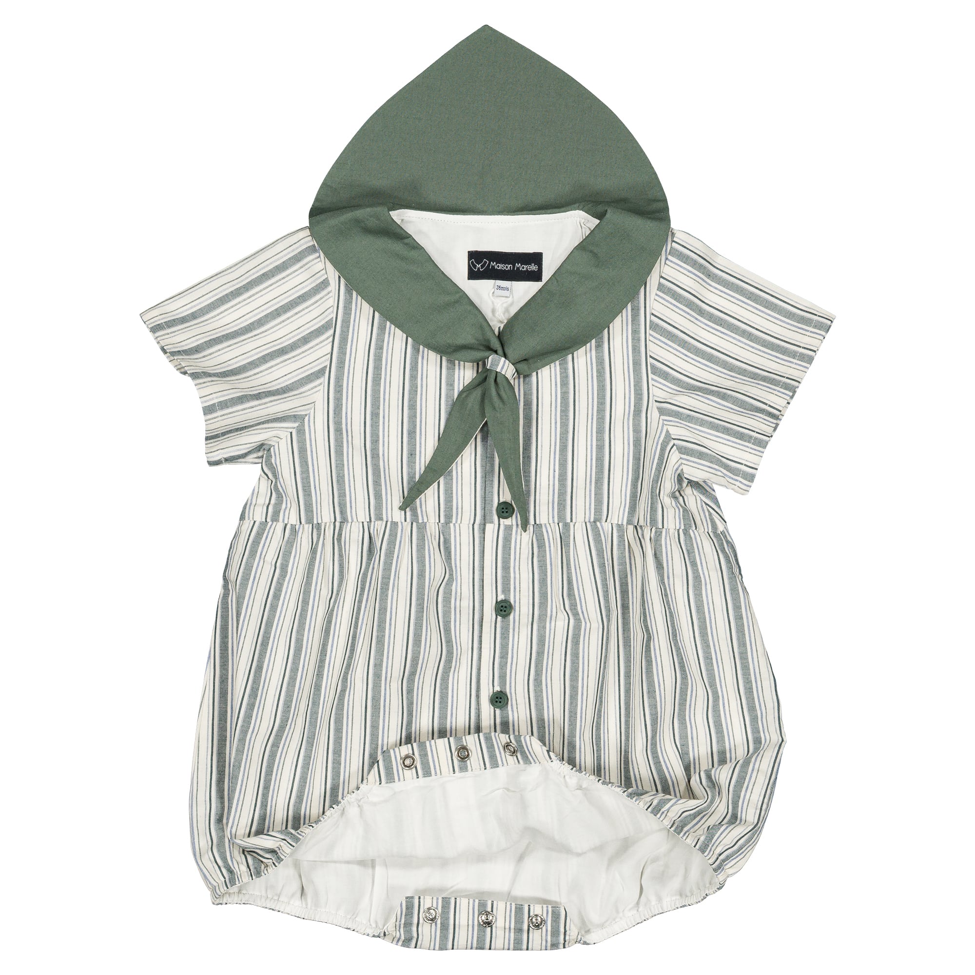 予約【Maison Marelle】Romper ROI - forest green stripes / 6月上旬以降入荷
