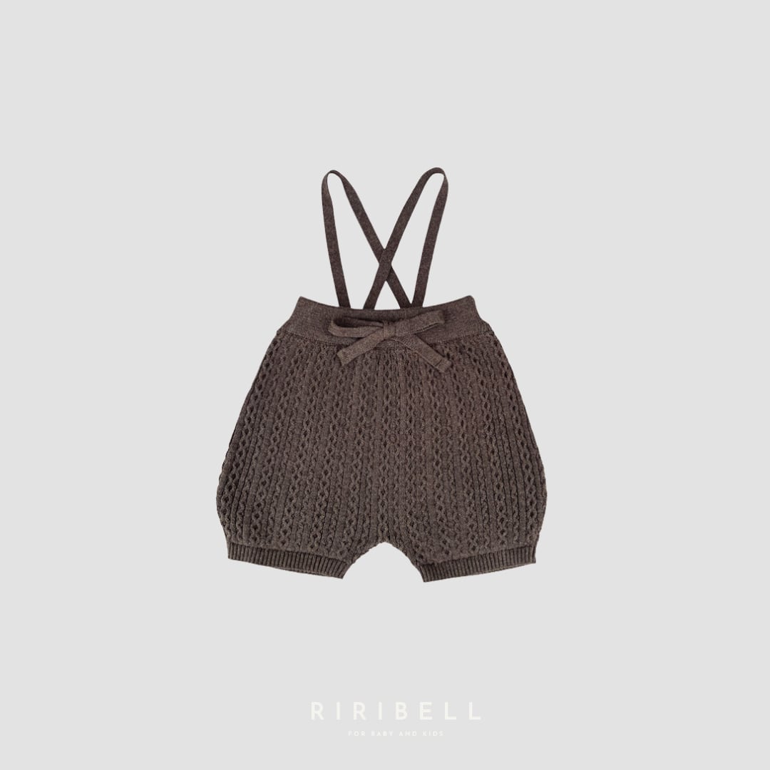 背中でクロスし、フロントで結んでサイズ調整ができるストラップ付きショートパンツ。