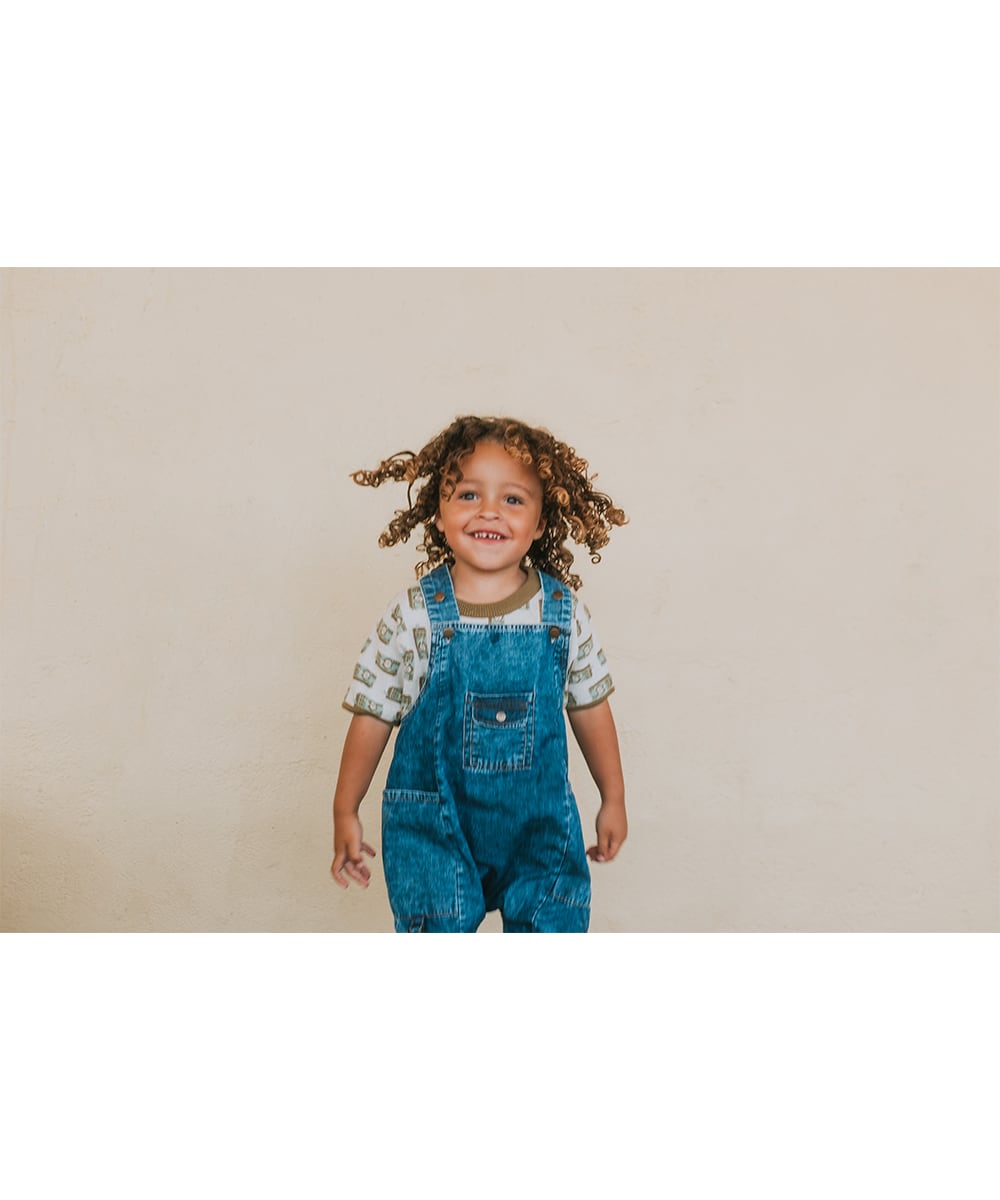 やさしいアップルジュースのモチーフが目を惹く、遊び心たっぷりの1枚。何気ない日常や、夏のピクニックの空気をまとったようなTシャツです。