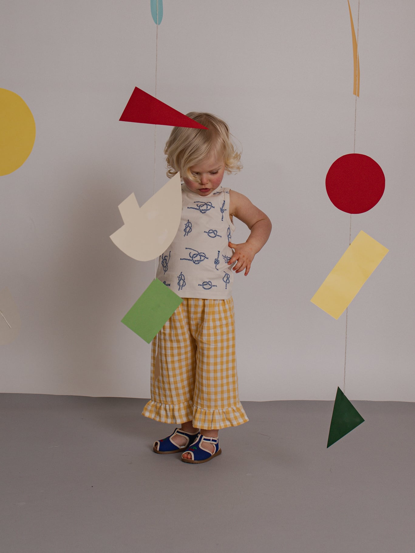セーラーノット柄が、コーデに爽やかなマリンのアクセントを添えます。