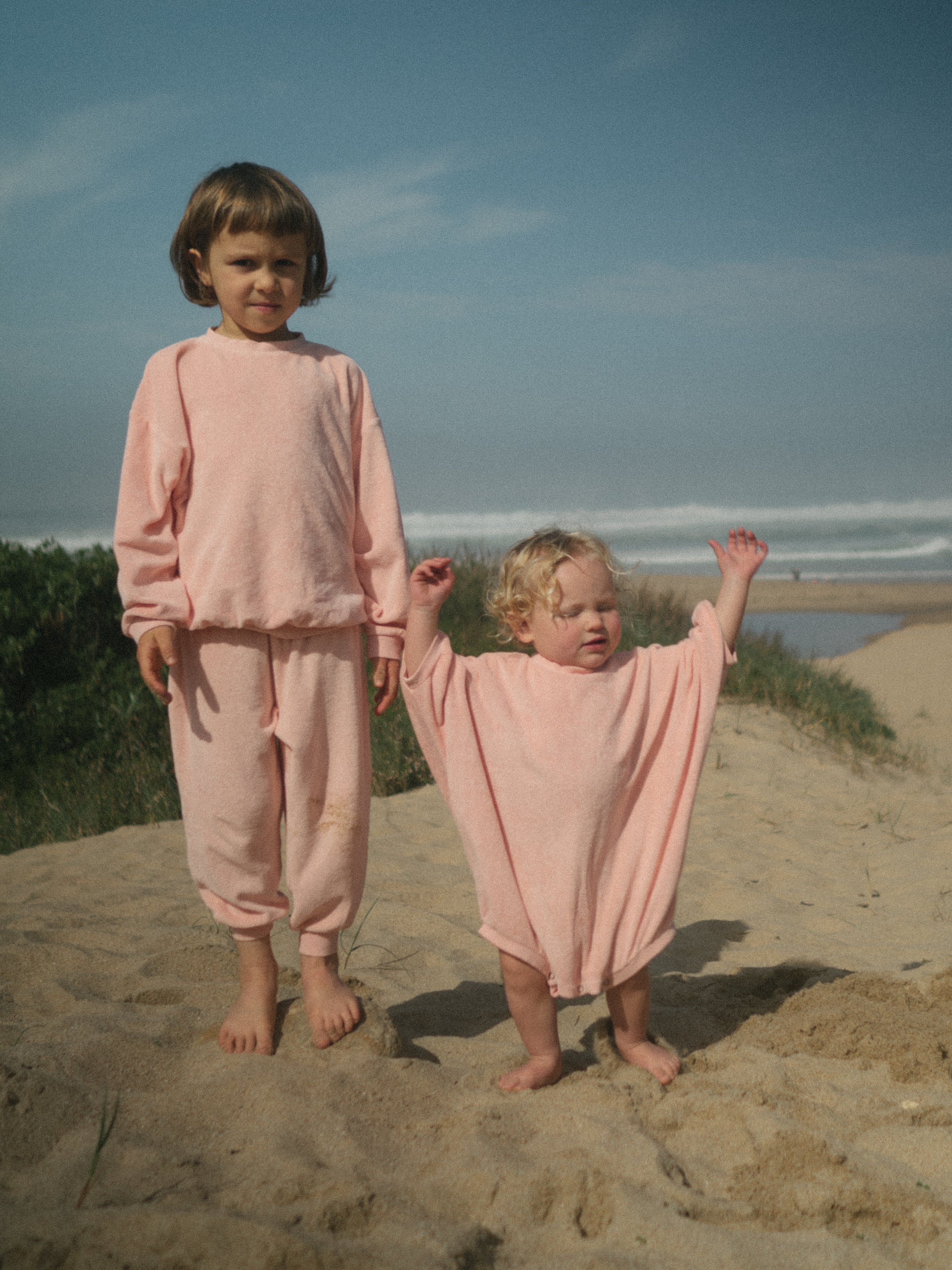 たっぷりとギャザーを寄せたバルーンスリーブとウエストバンドが、可愛らしさとスタイリッシュな印象を演出します。後ろネックにスナップボタンがついており、着脱もスムーズに行えます。