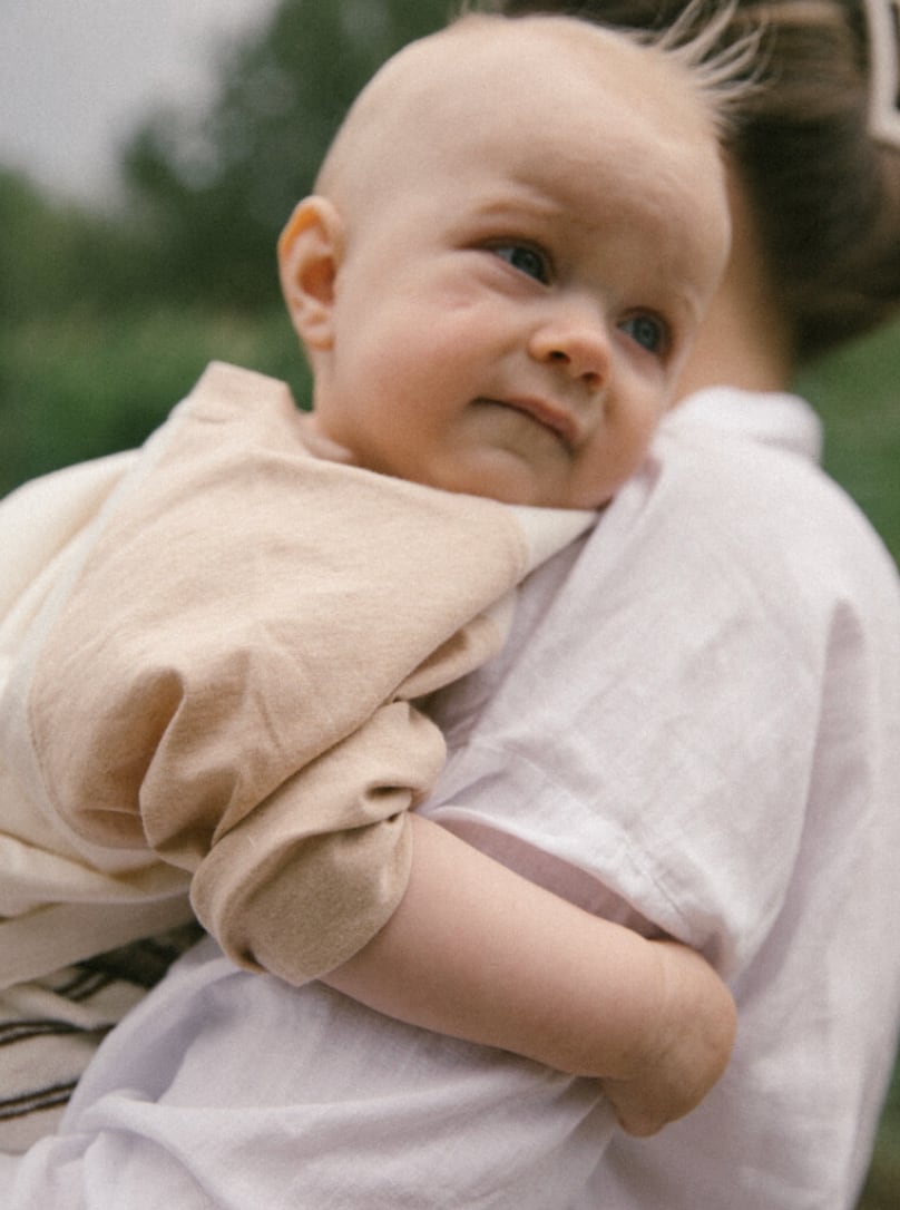 肩から斜めに切り替わるラグランスリーブが特徴の、やさしい着心地のTシャツ。お子さまの動きを妨げることなく、自然に身体を包み込みます。袖は手首まで届く丈感で、春夏はもちろん季節の変わり目にも活躍。ベーシックで合わせやすいデザインに、ゆとりのあるオーバーシルエットを取り入れることで、さりげない上品さをプラスしています。