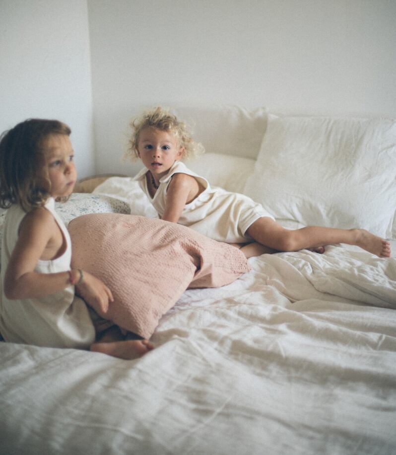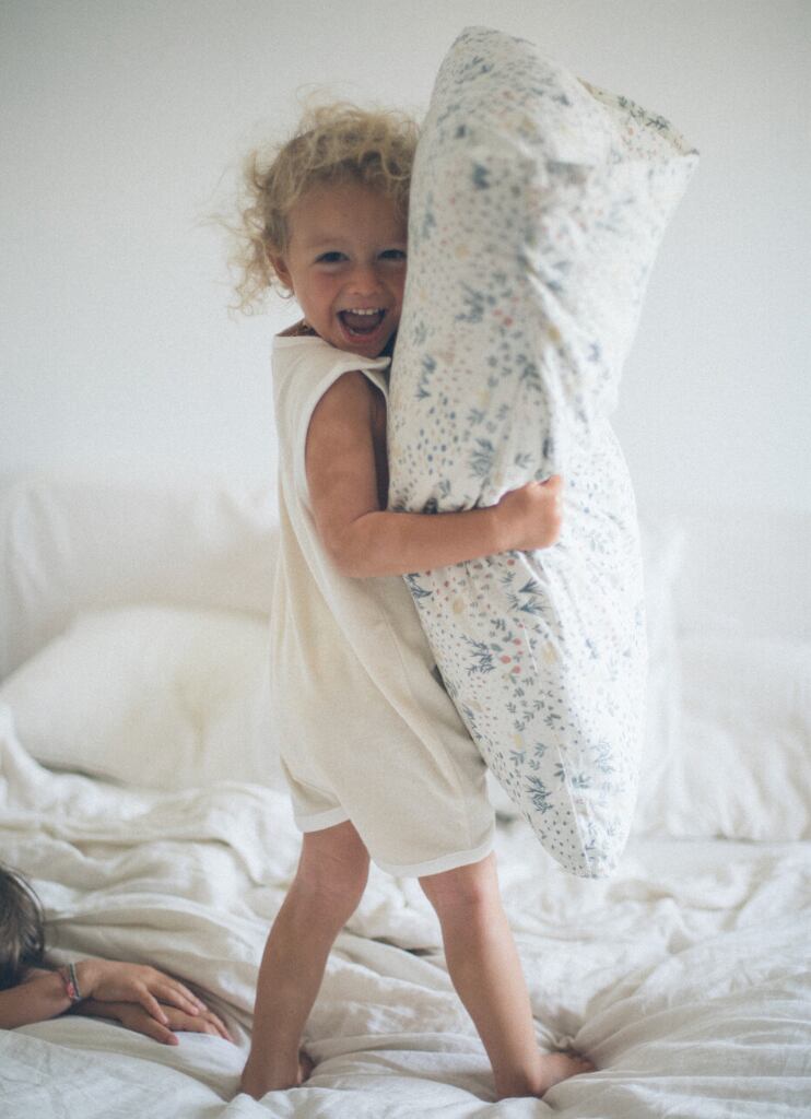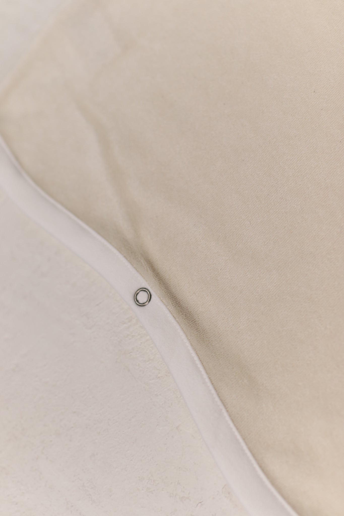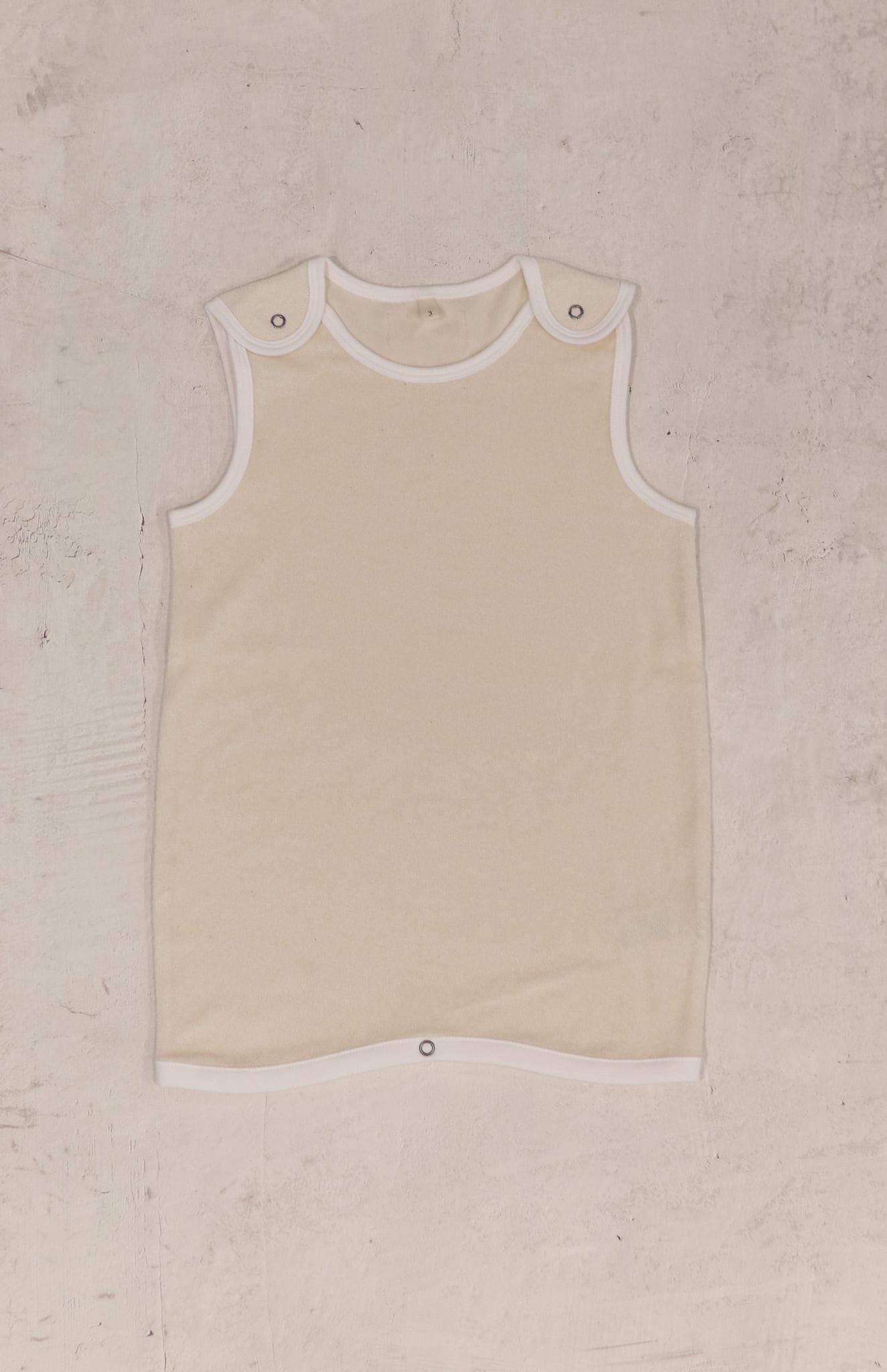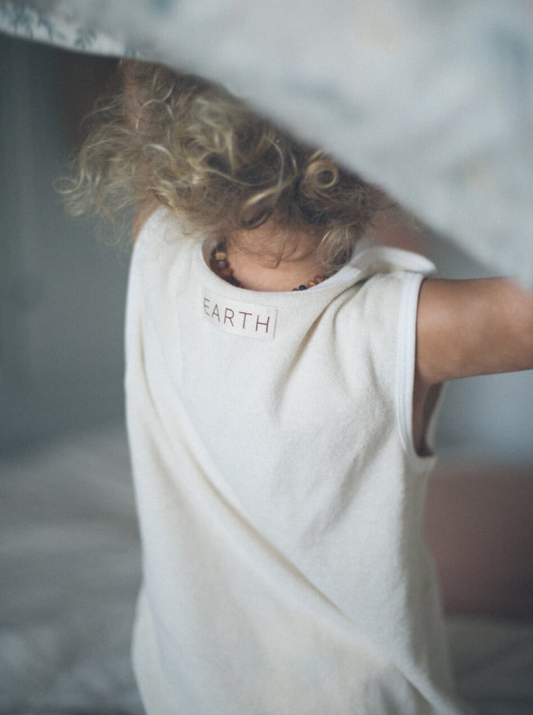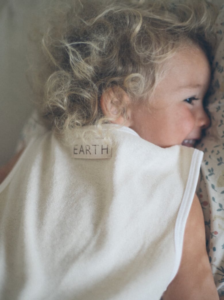 吸湿性と通気性に優れた、オーガニックコットン100%のループテリー素材で仕立てました。汗をかきやすいお子さまにも適しており、季節を問わず快適にご使用いただけます。単体ではもちろん、薄手のTシャツとのレイヤードにもおすすめで、夜通しやさしく包み込むような心地よい眠りをサポートします。
