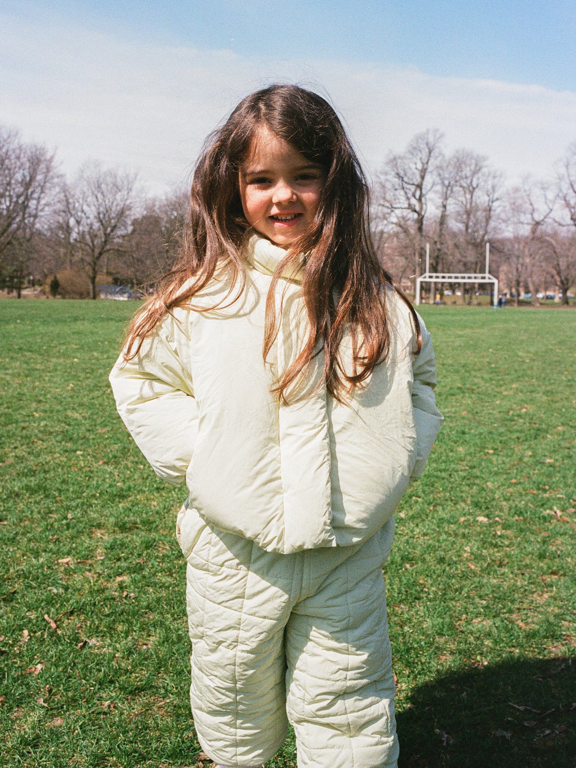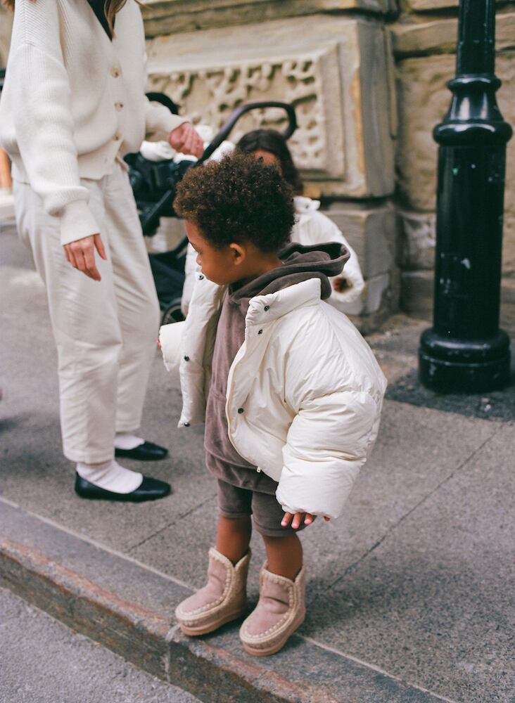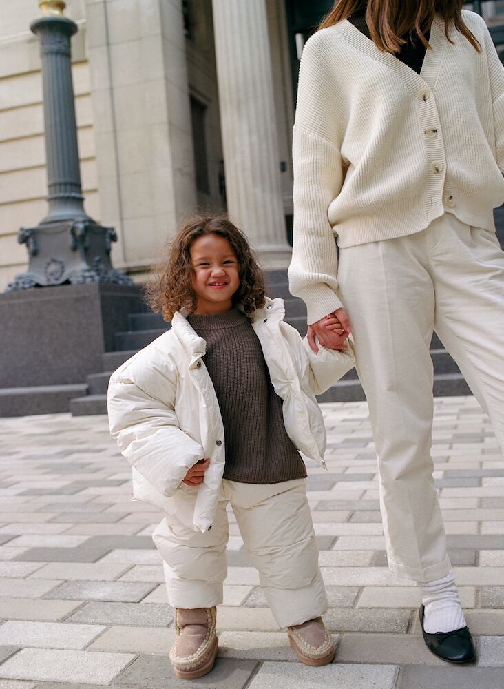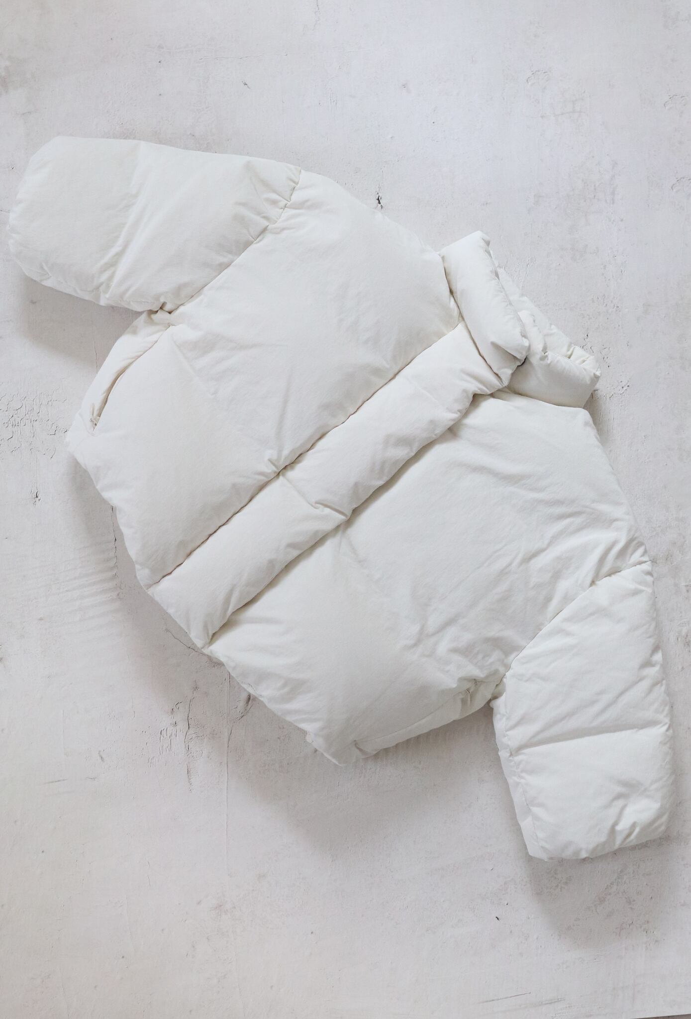 雪原に佇むと、大きなマシュマロのような愛らしさを感じさせる、あたたかなシルエットの一着。たっぷりと詰めたダウンが軽やかに身体を包み込み、高い保温性を発揮します。フロントジッパーはワイドなプラケットで覆うことで、全体をすっきりとしたミニマルな印象に仕上げました。両サイドにはヒポケットを備え、内側にはストリングを配置。風の強い日には軽く絞ることで、冷気の侵入を防ぎ、より快適に着用いただけます。