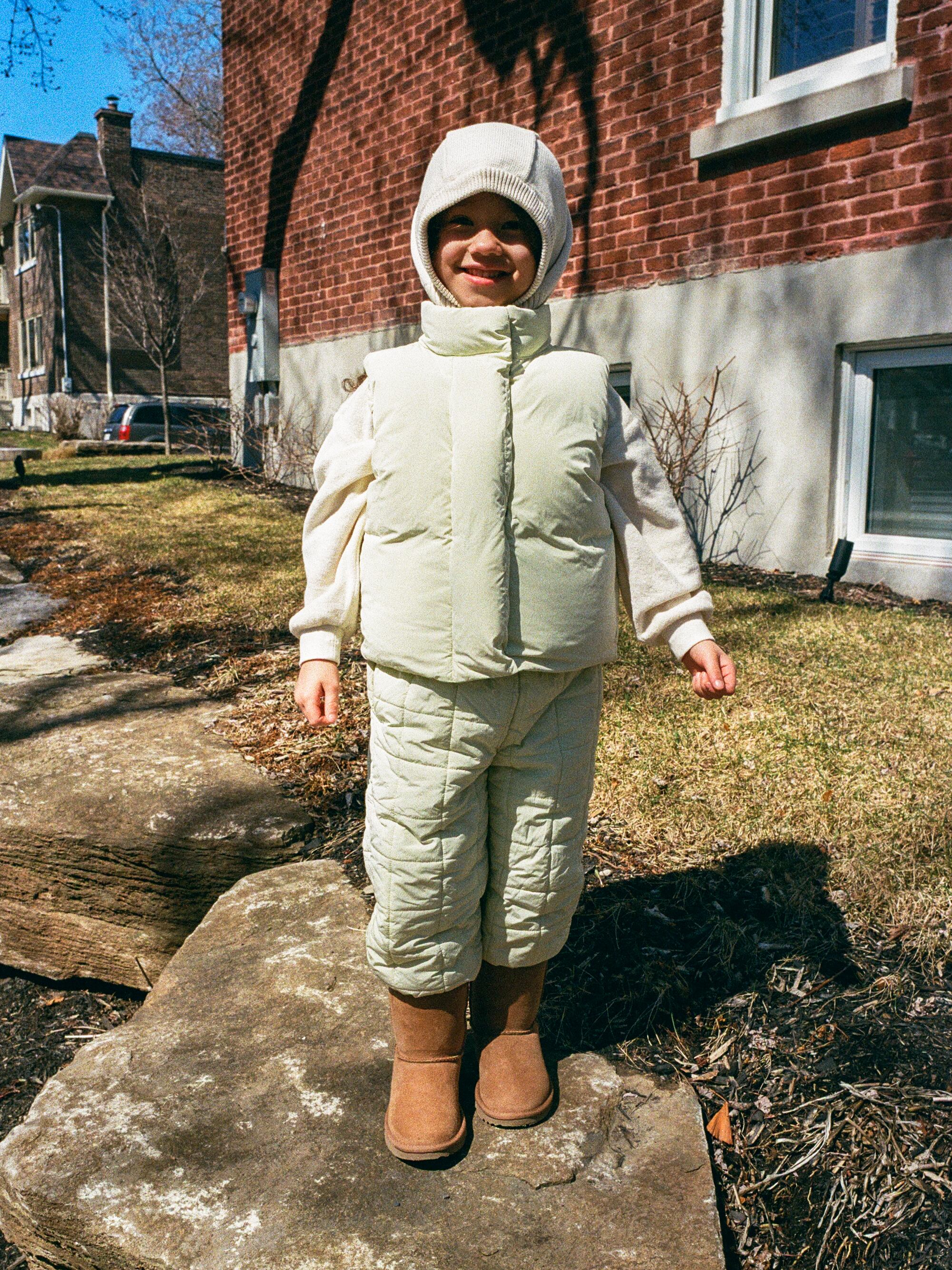 ふんわりとしたボリューム感で丸みのある可愛らしいシルエットを演出しつつ、外出時にも気軽に着用できるスタイルです。さっと羽織れる軽さで、日常のお出かけやレイヤードスタイルにも活躍します。本製品はパディングジャケットとはフィット感やシルエットが異なり、全体的に着丈が短く、ボリューム感のあるシルエットが魅力のアイテムです。