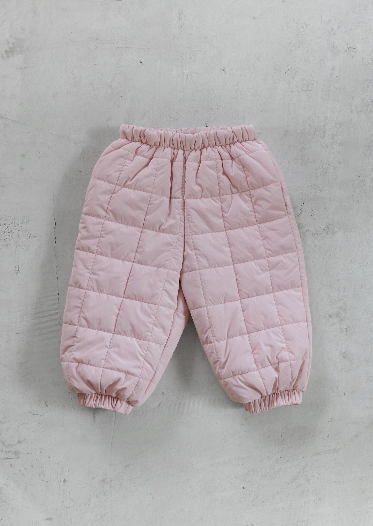 パディングパンツには、軽量で優れた保温性を持つ3M Thinsulate(シンサレート)中綿を使用しています。ボリュームが出すぎると動きにくくなるため、軽やかさとあたたかさを両立する最適な素材を選びました。ジャケットと同じ格子状のキルティングデザインで、セットアップとしての着用もおすすめです。また、ニットトップスと合わせて冬のデイリーパンツとしても活躍します。