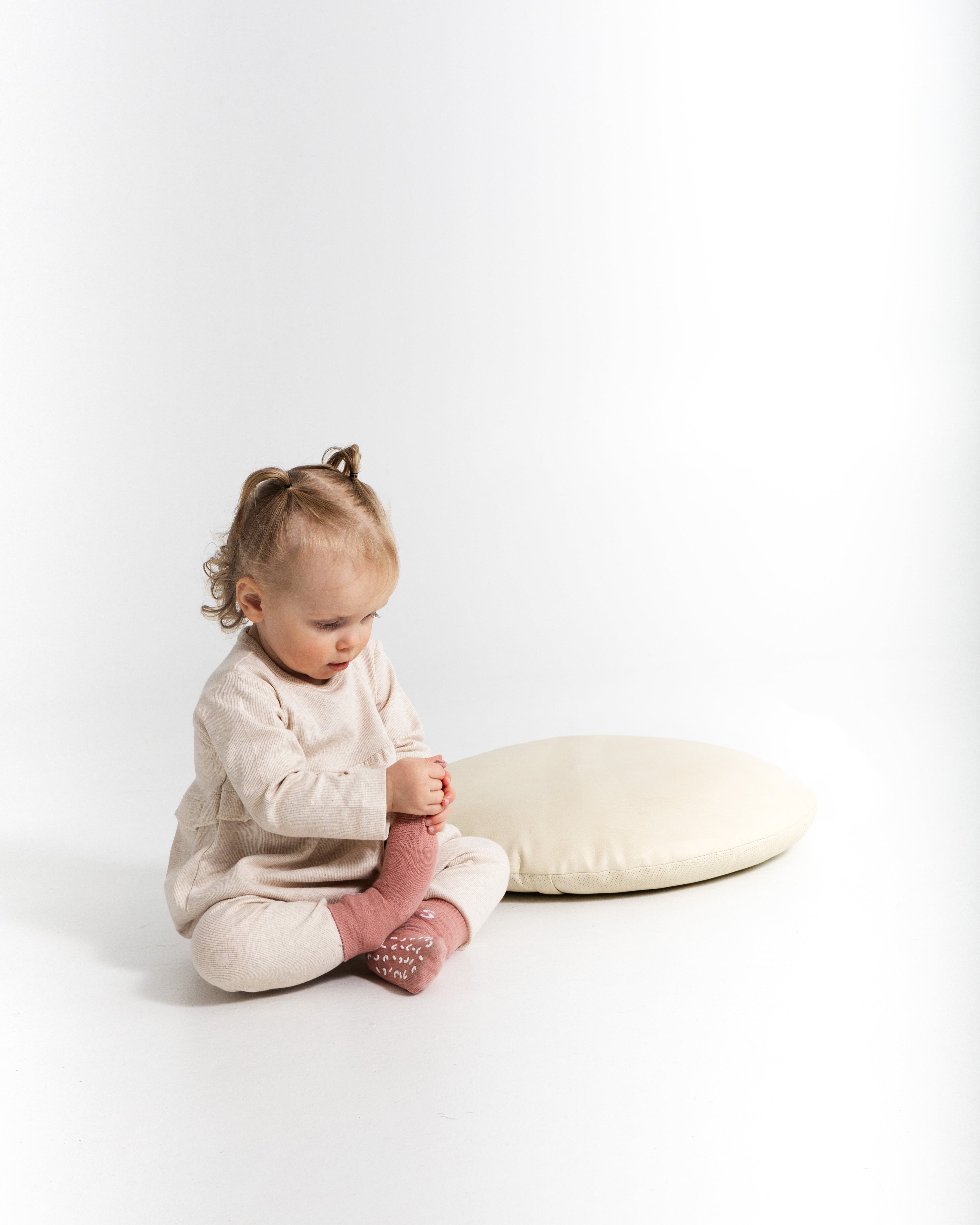 滑り止め付きの靴下で、足の裏と内側にもシリコンがあるため、脱げにくく、滑りにくく、なくならないと大人気の靴下です。つま先部分は小さくて敏感な子供のつま先にも優しい平な縫い目のシームレスになっています。