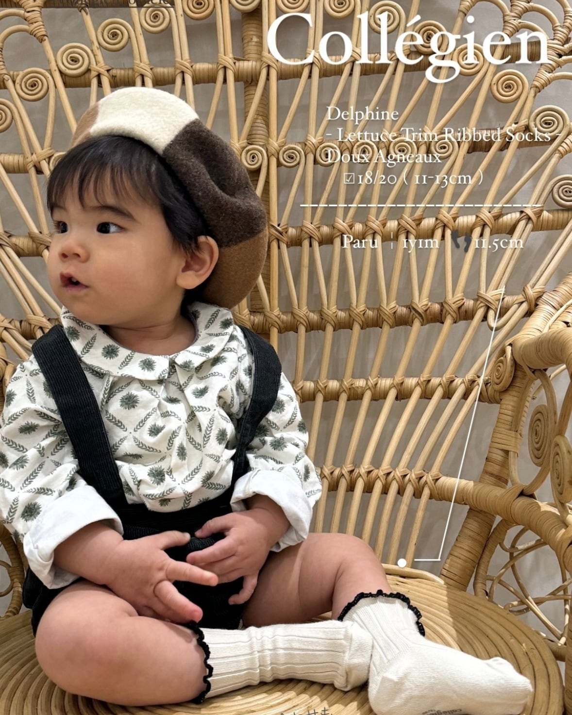 華奢なメロウが可愛いCollegienの人気デザインのソックス。落ち着いたカラーと甘くなりすぎないデザインなので男の子にも女の子にも人気のアイテムです。
